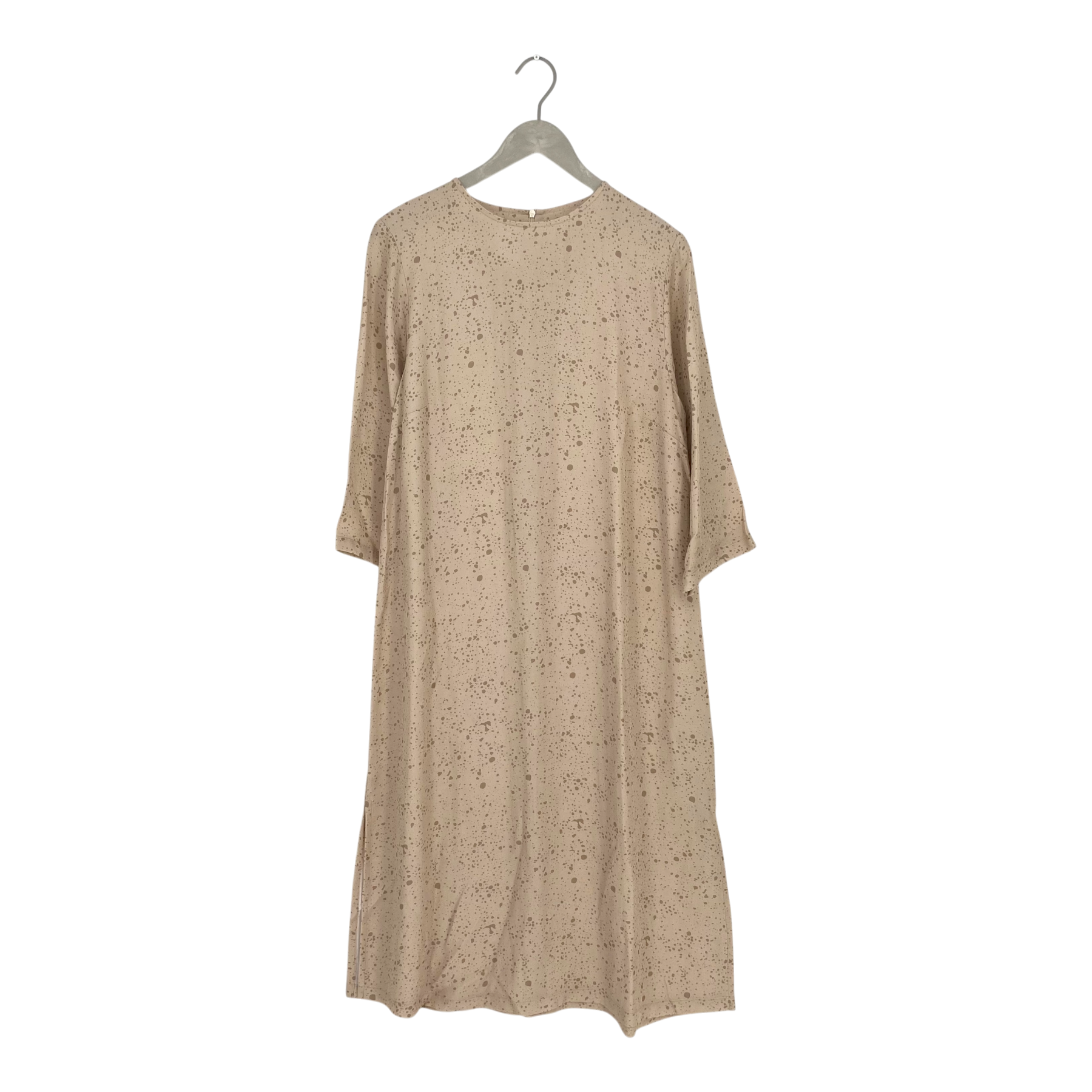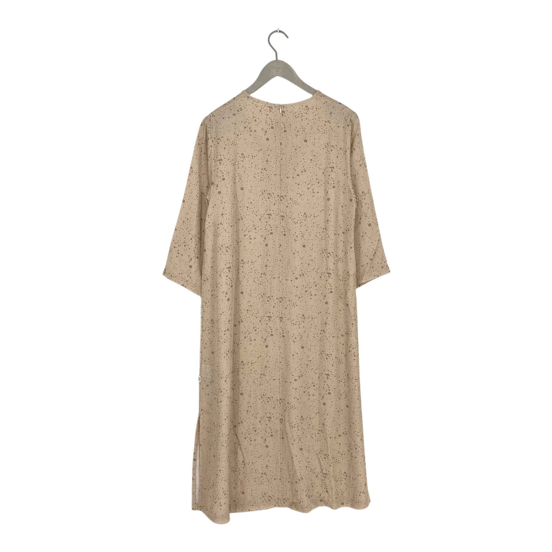 Makia woven flowy dress with 3/4 sleeves, small slit on the hemline and zipper closure on the back.