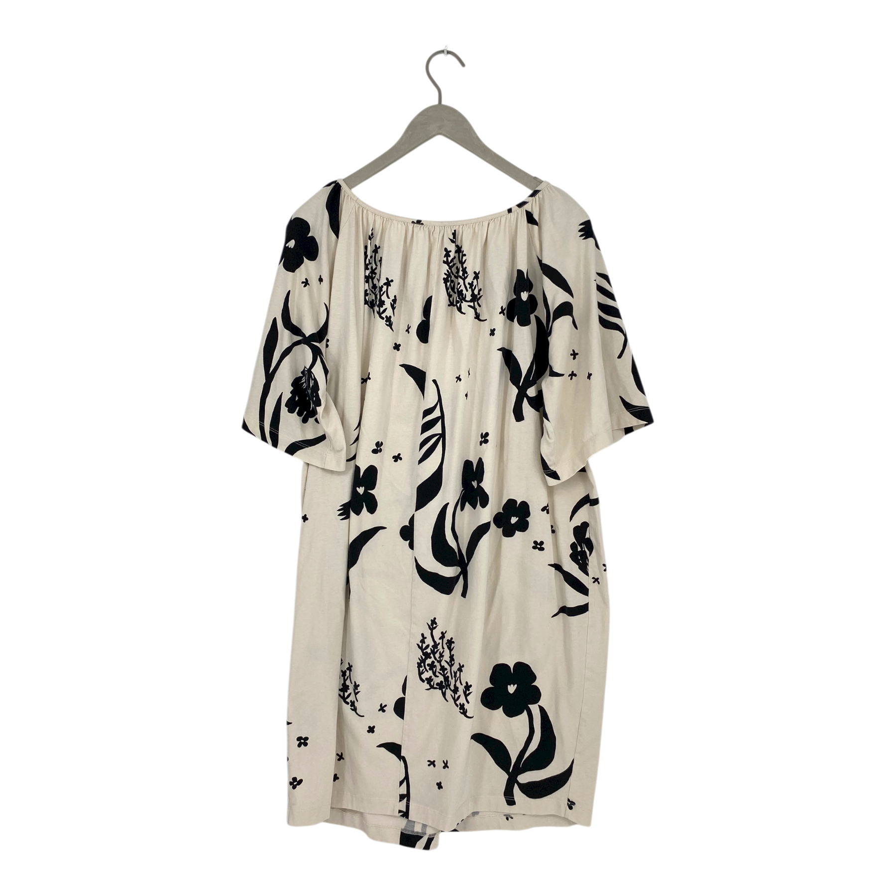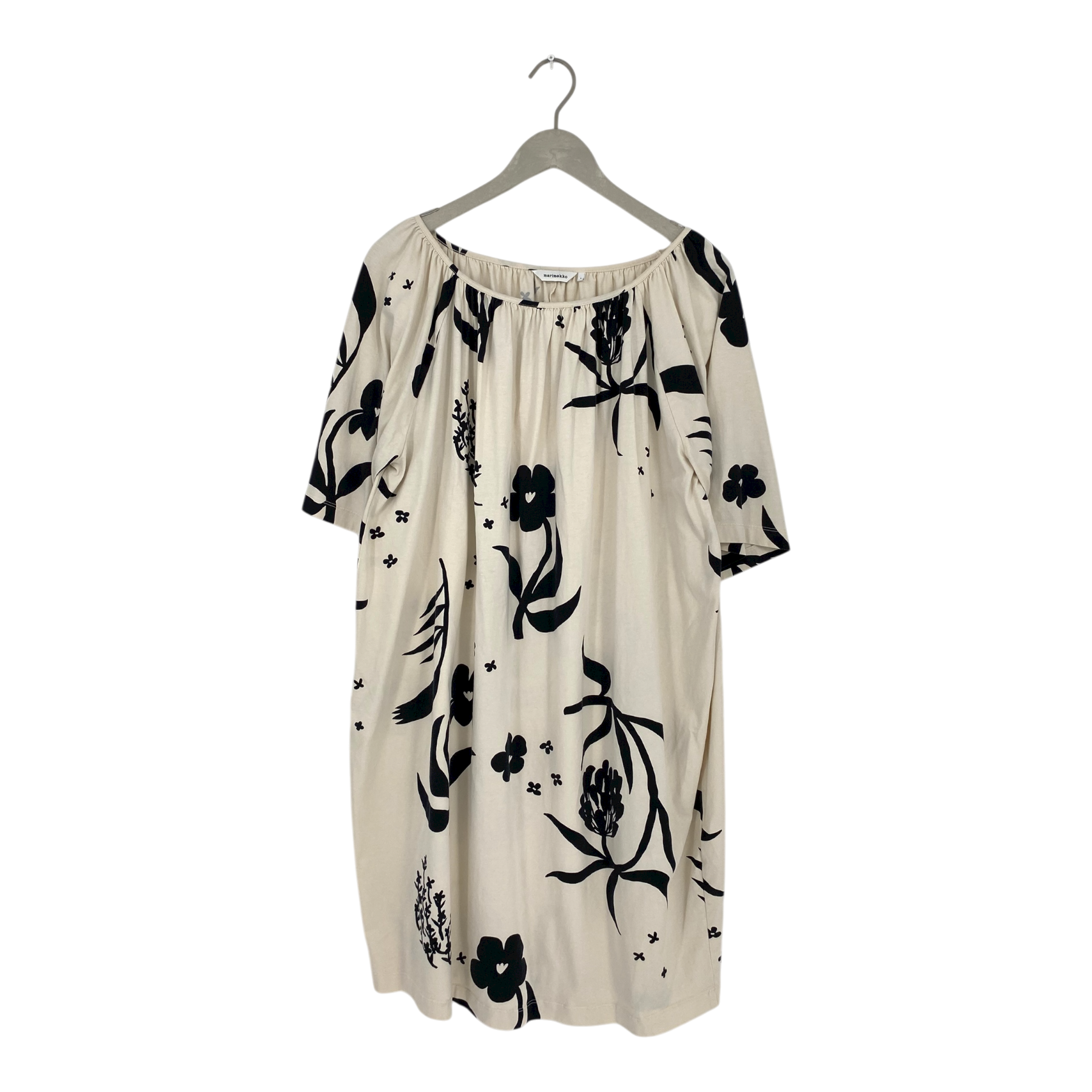 Marimekko Draperia dress in the Herbaario print. The Draperia has a round neckline with gathers and wide half sleeves.
