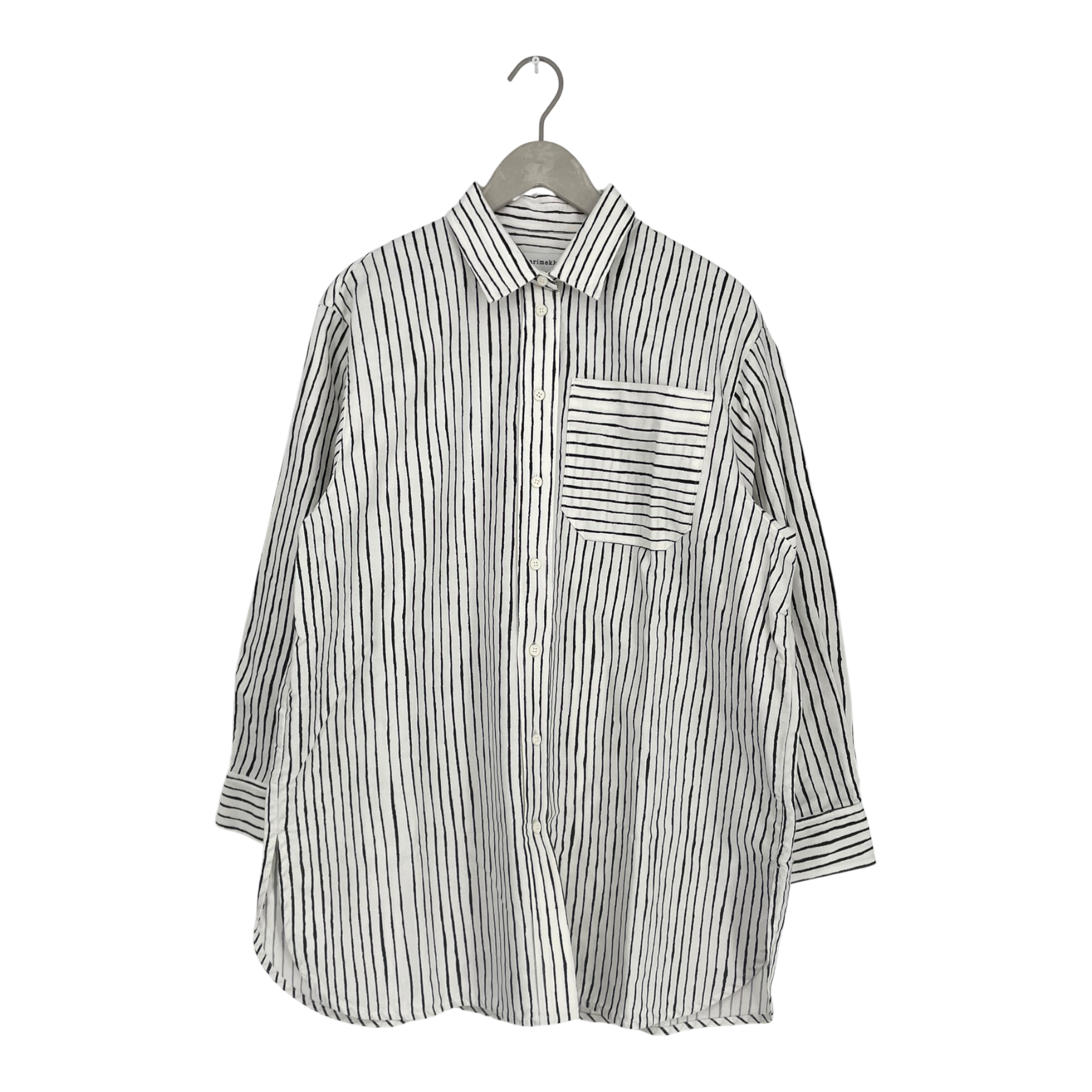 Marimekko Profiili buttoned shirt in the Aita design. The Profiili shirt is fully buttoned, has one front pocket and a rounded hem.