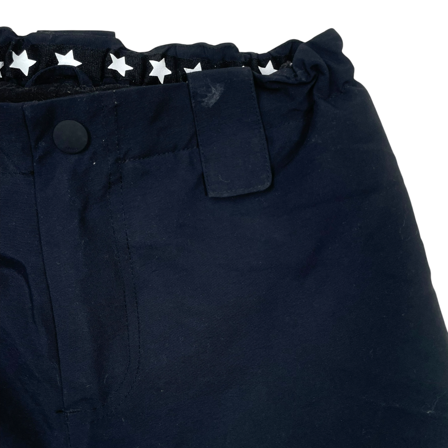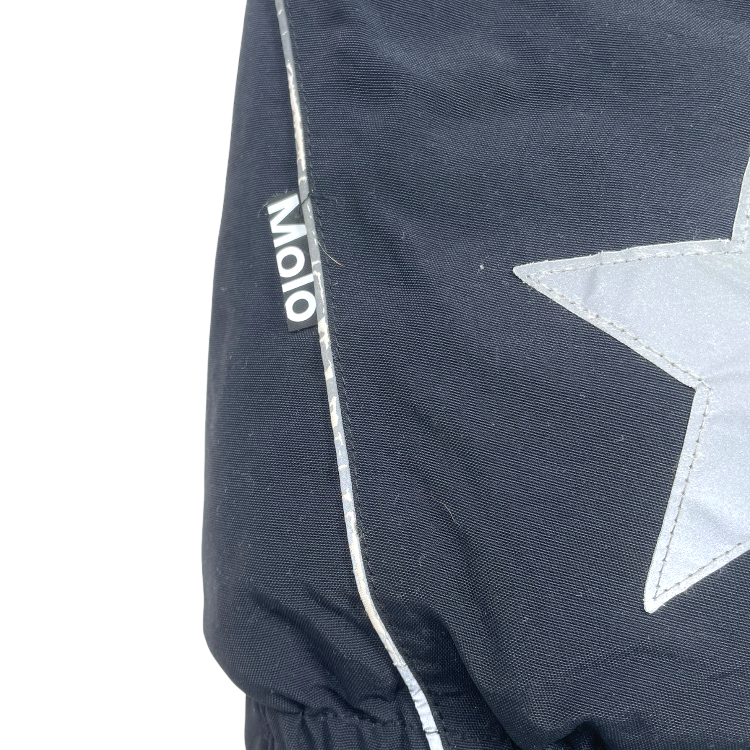 Molo Pollux Active is a pair of waterproof, lined ski trousers in black with an elastic waist, snaps and zip closure. They have Molo's iconic star reflectors on the back. They have taped seams and are constructed in windproof, waterproof and breathable materials.