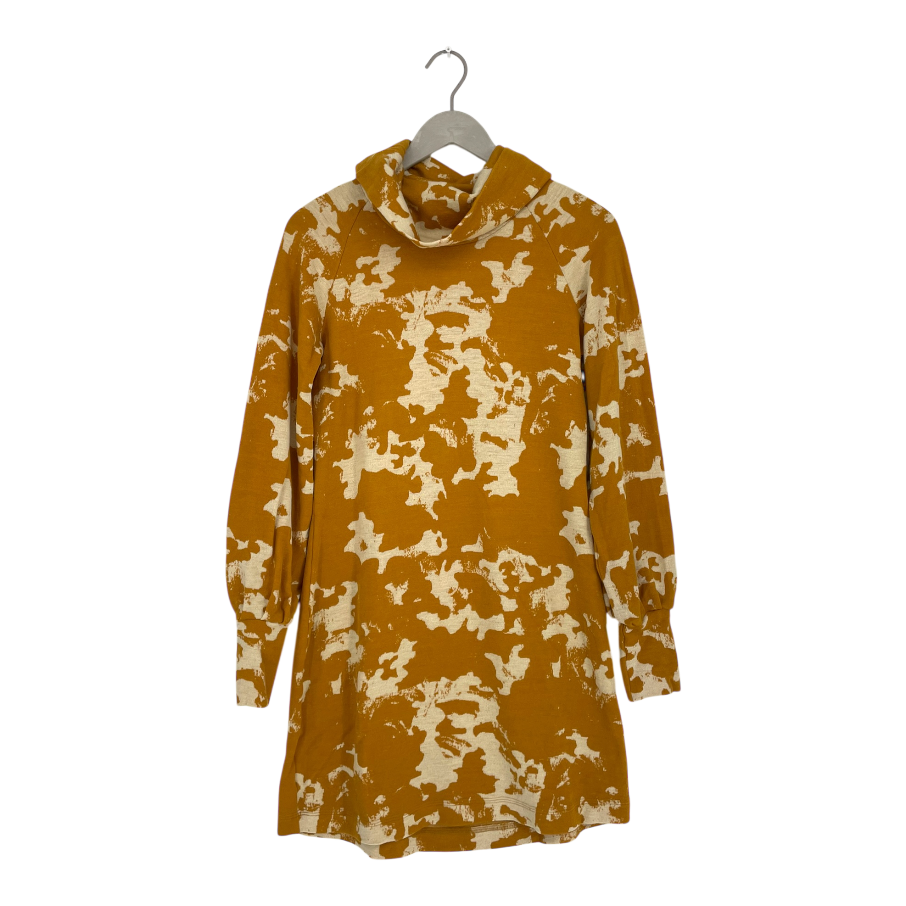 Ommellinen merino wool turtle neck tunic shirt. The shirt has a high and wide collar, straight sleeves.