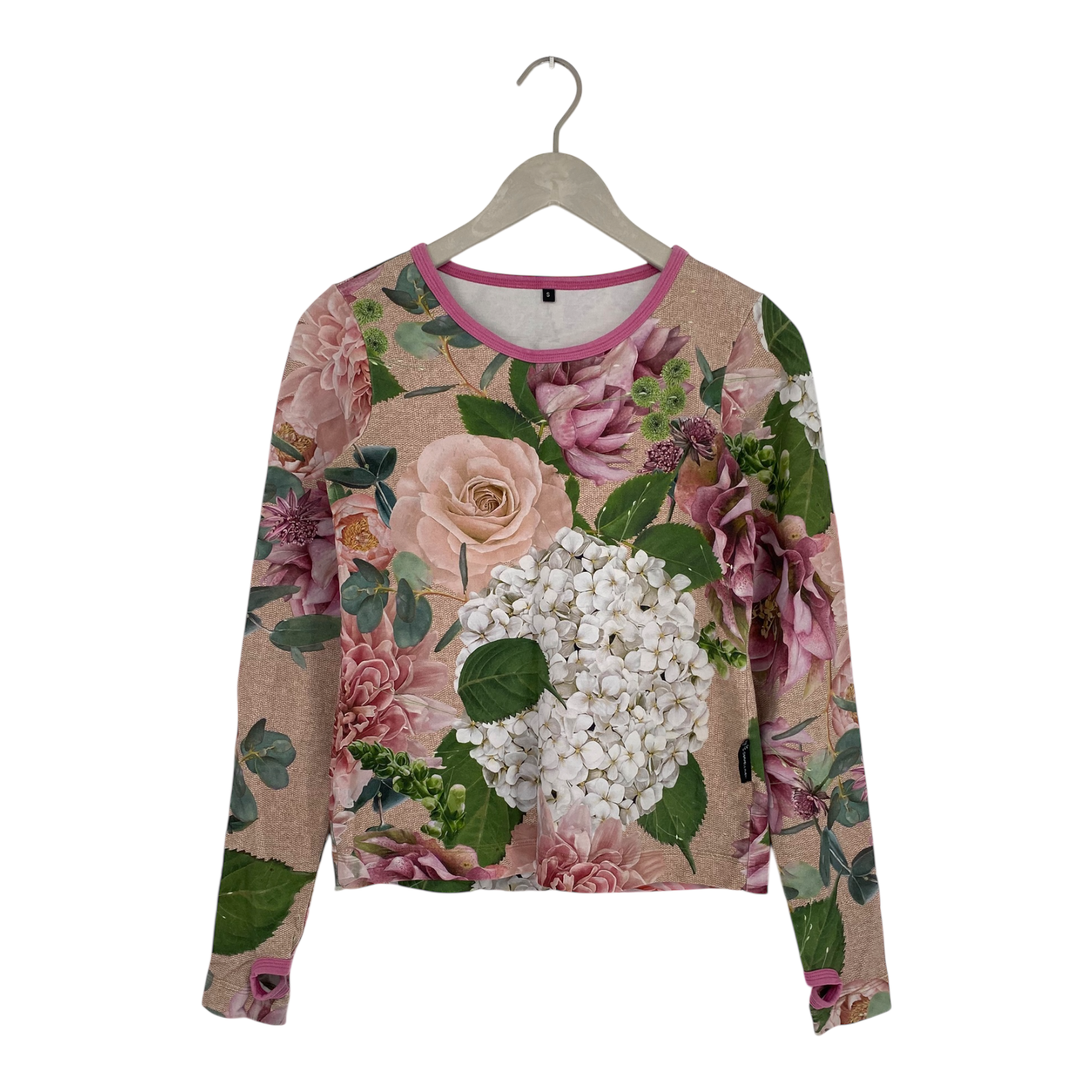 Ommellinen basic long sleeve peukkupaita shirt with thumb holes in flower print.