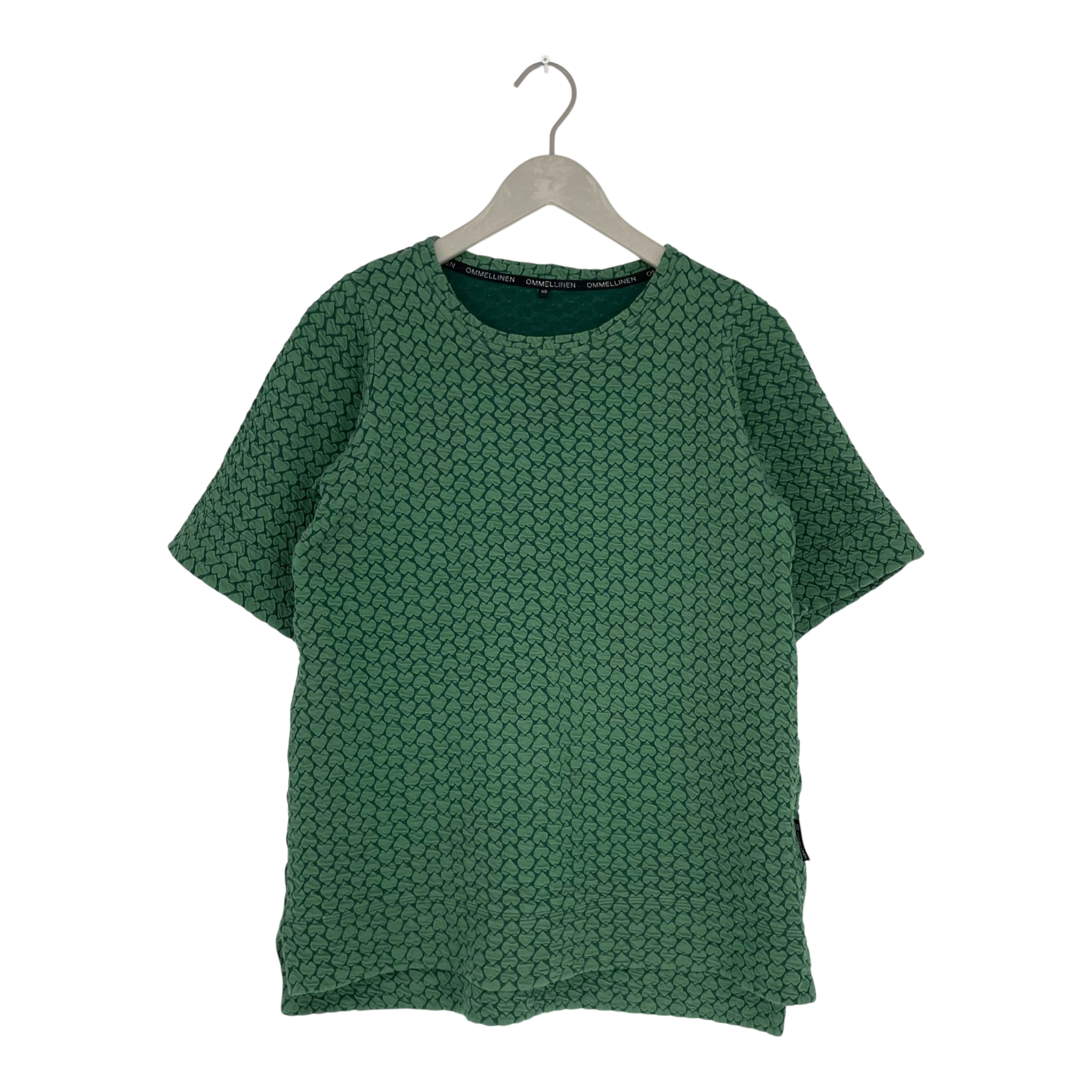 Ommellinen short sleeve t-shirt style sweatshirt in black and white hearts print. Small slits on the sides in hem.