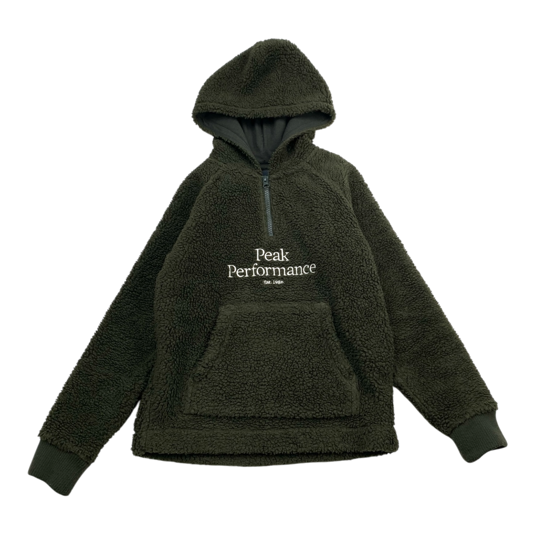 Peak Performance junior Pile hooded teddy fleece with 1/4 zipper.