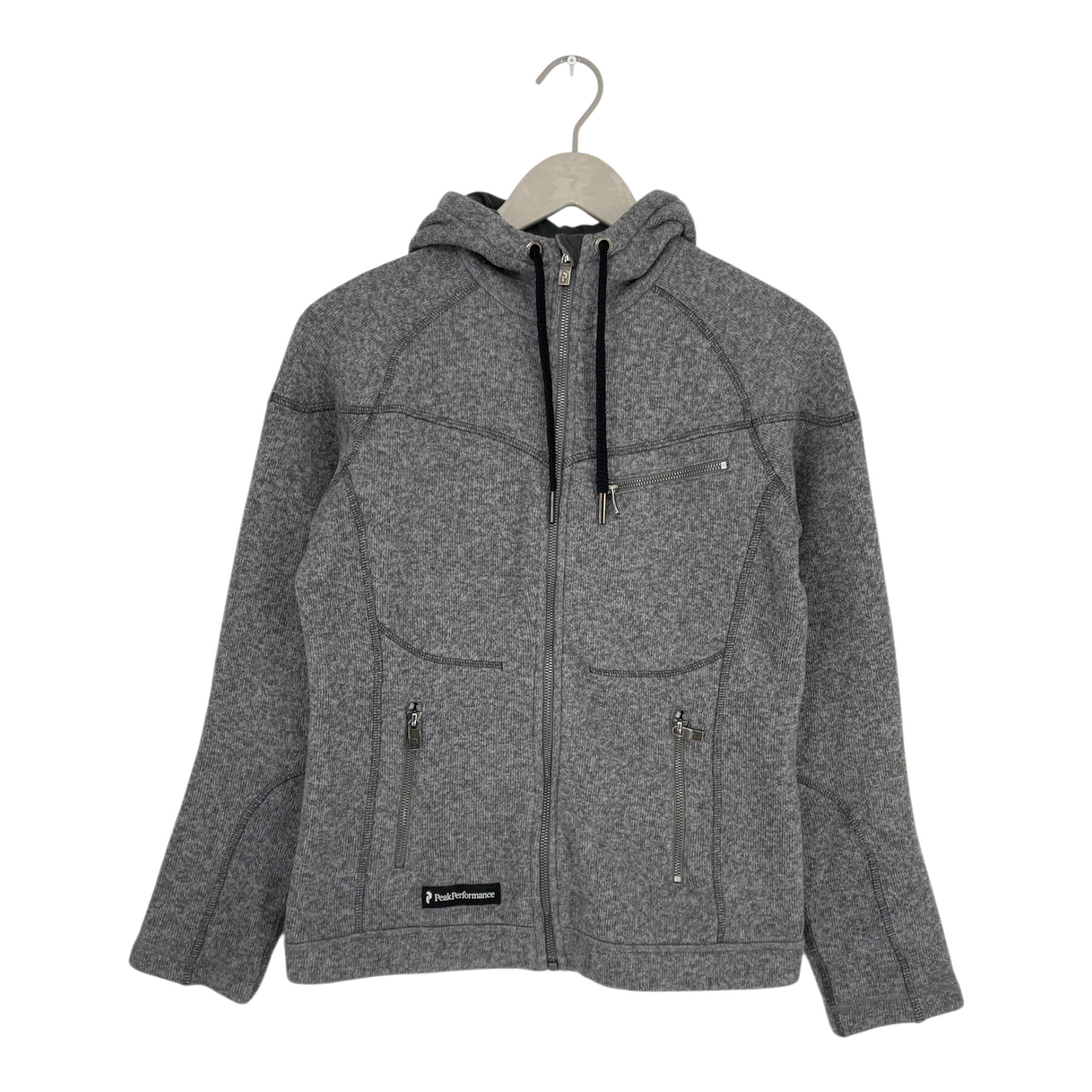 Peak Performance W Wrang H hooded fleece jacket with full-zip closure and adjustable hood drawstrings. Features multiple zippered pockets including chest pocket and side pockets for secure storage. Soft fleece construction with raglan sleeves for enhanced mobility. Regular fit design suitable for outdoor activities and casual wear.