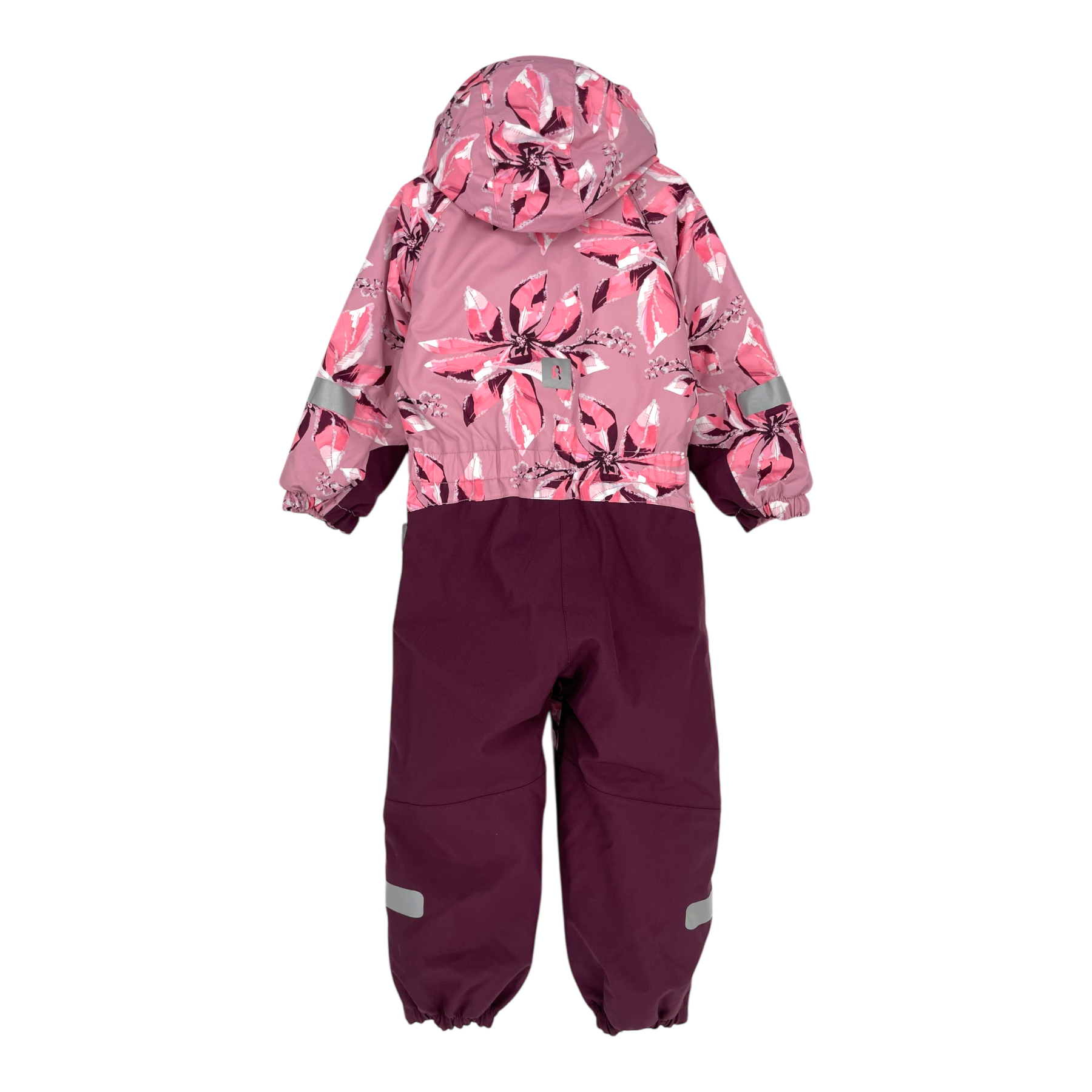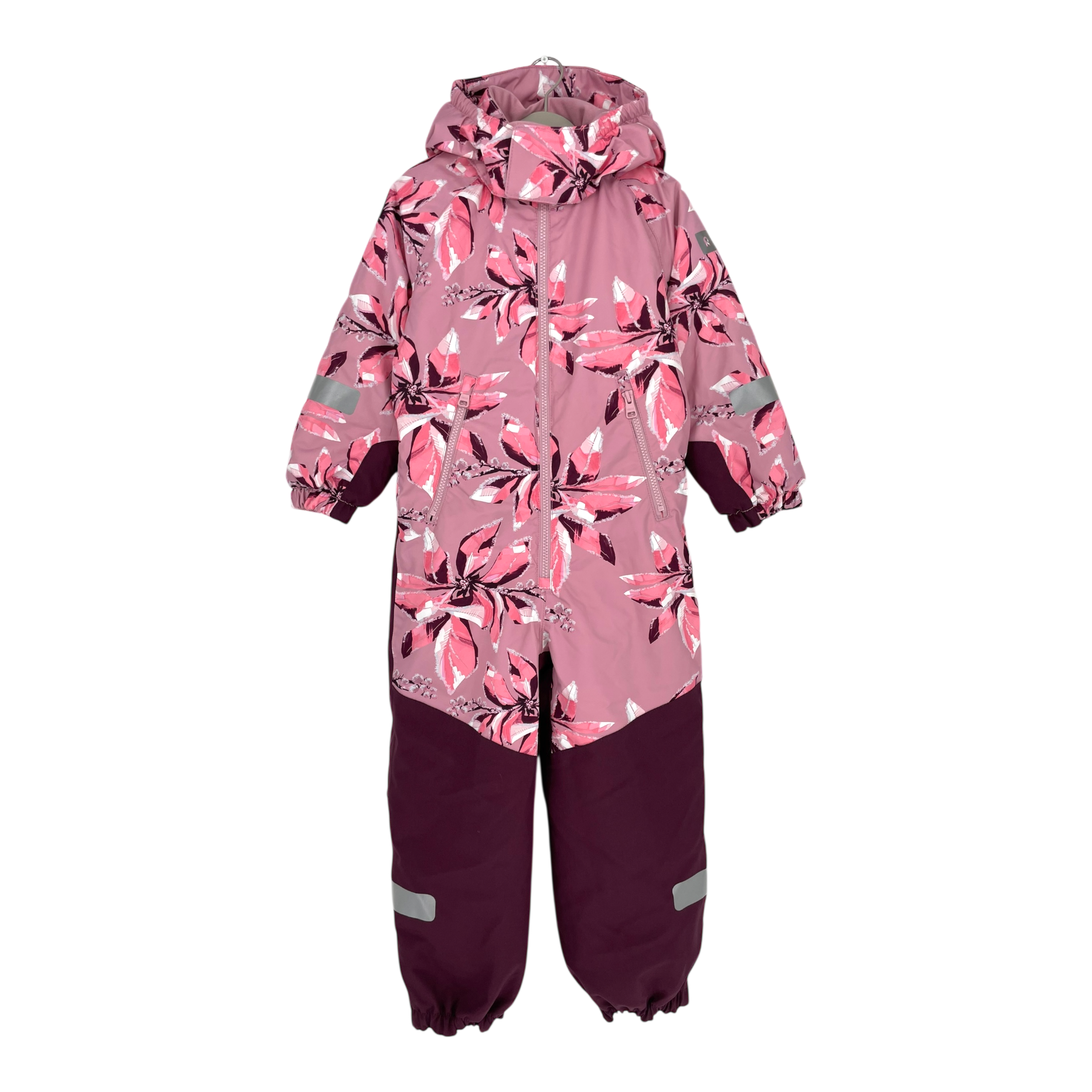 Reima Kurikka overall with detachable hood, zip pockets on sides, reflective details, elastic on the waist, and durable foot loops.The material is originally waterproof up to 10,000mm water column, windproof, and breathable. All seams have been sealed. Durable reinforcements on the bottom, knees, and hems.