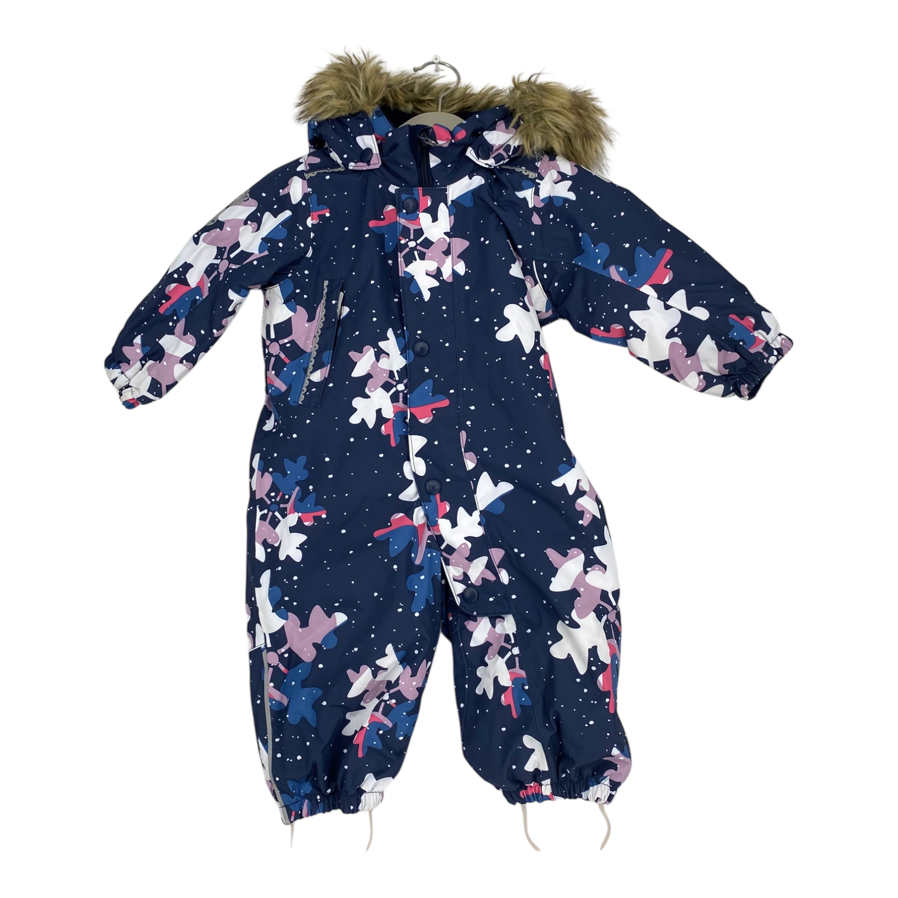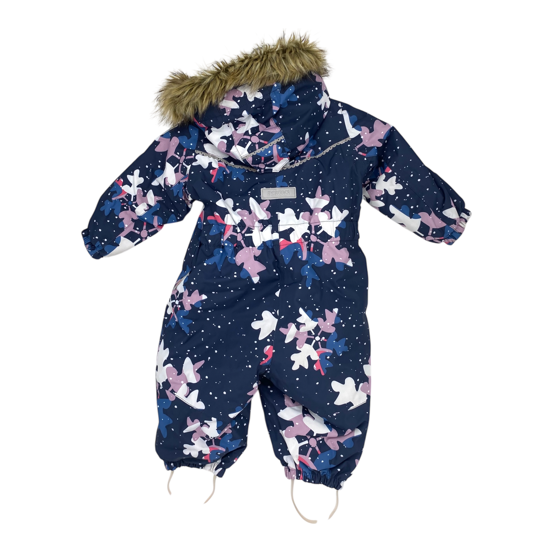 Reima Louna winter overall is originally waterproof up to 10 000mm water column. The water- and windproof design is made from a durable, breathable material. Protection from the wind is provided by the detachable hood, which is also safe when kids are playing outdoors.