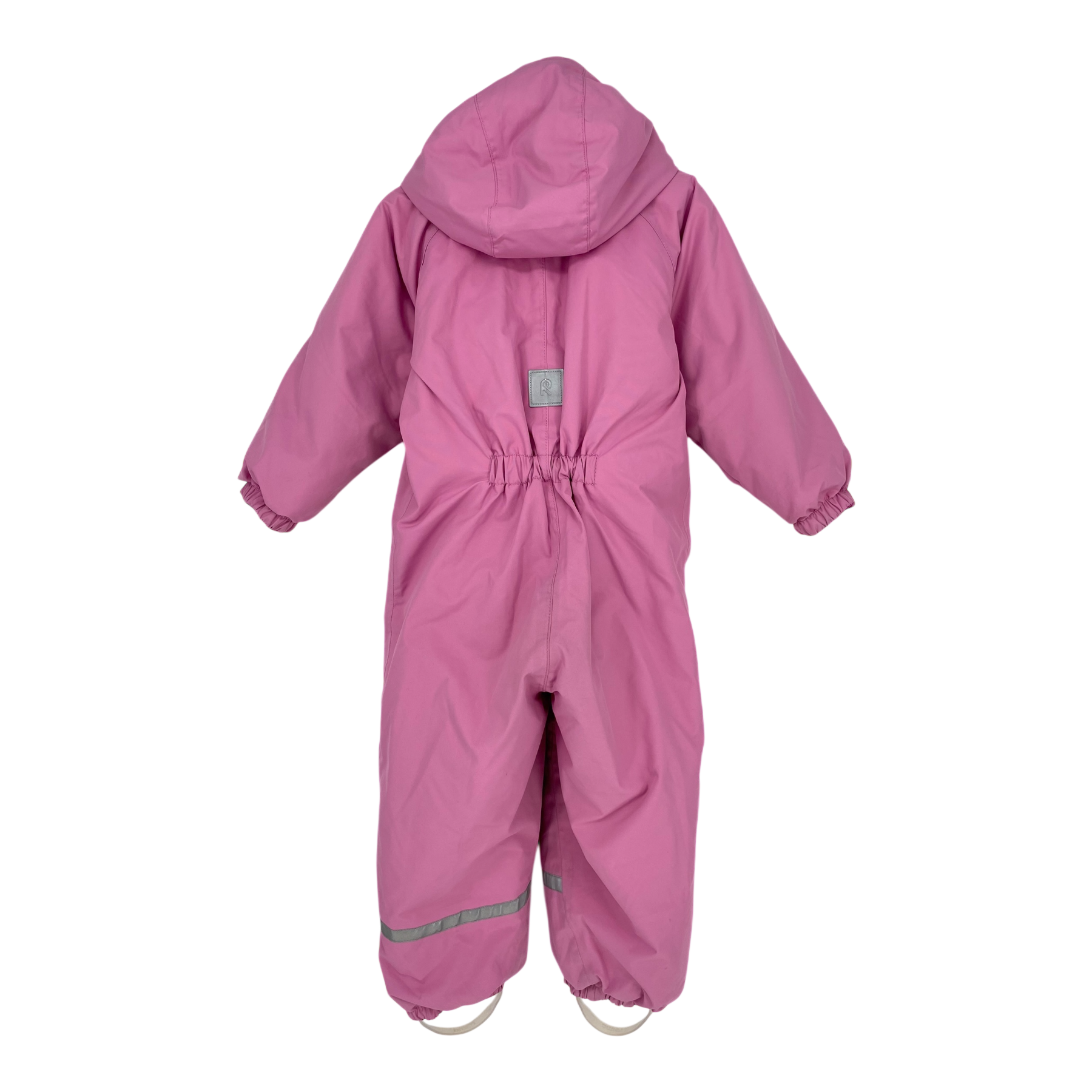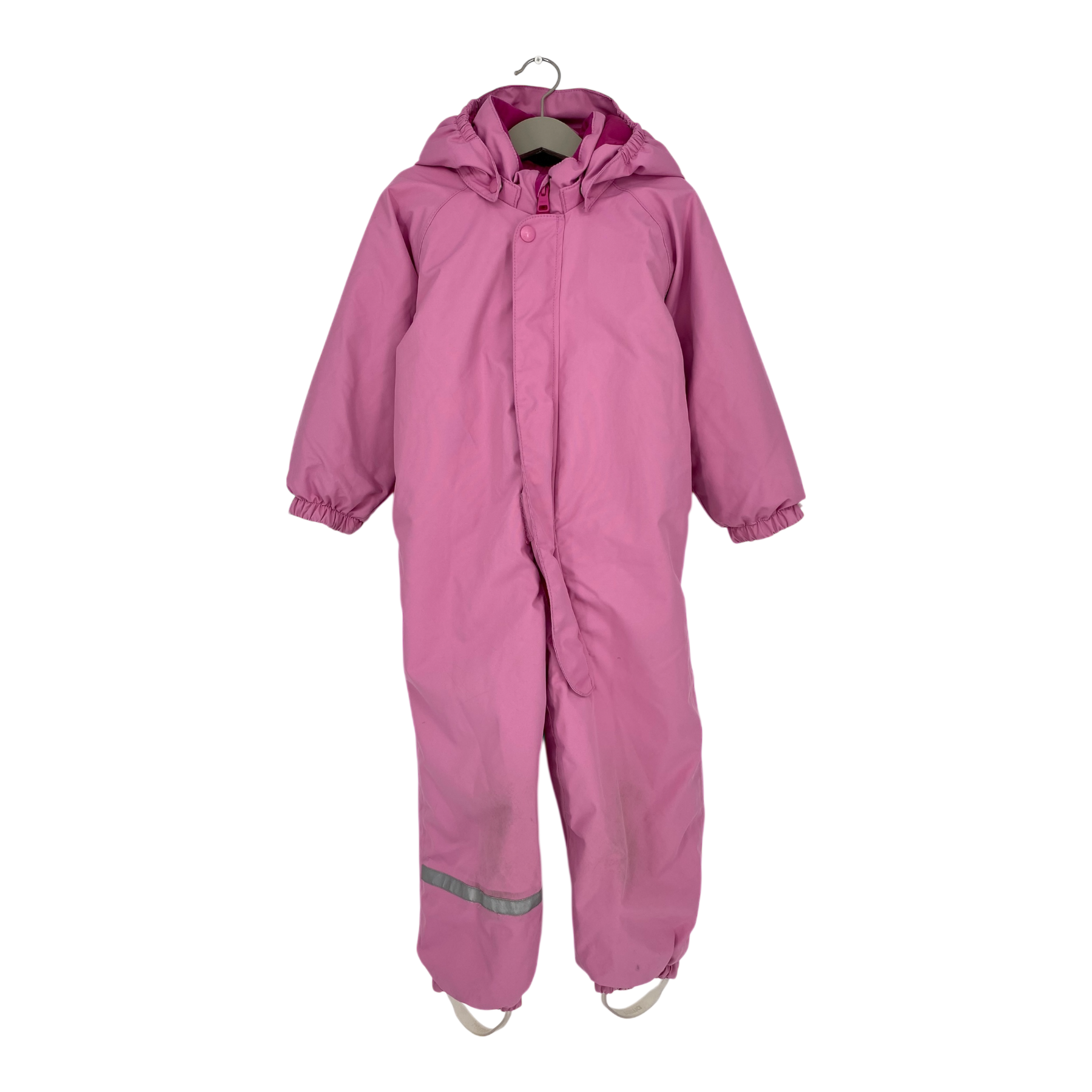 Reima Tuohi winter overall with detachable hood, durable foot loops, and zip closure. The material is originally wind- and waterproof.