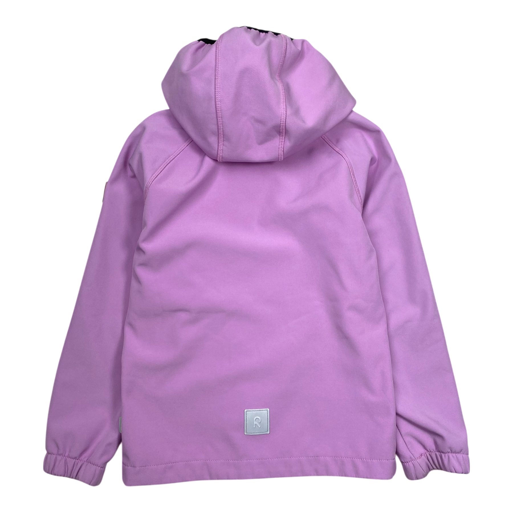 Reima Vantti softshell mid-season jacket with detachable hood, zip pocket, and zip closure. The material is originally waterproof up to 10,000mm water column and windproof. The soft fleece on the reverse not only feels nice against the skin but warms too.