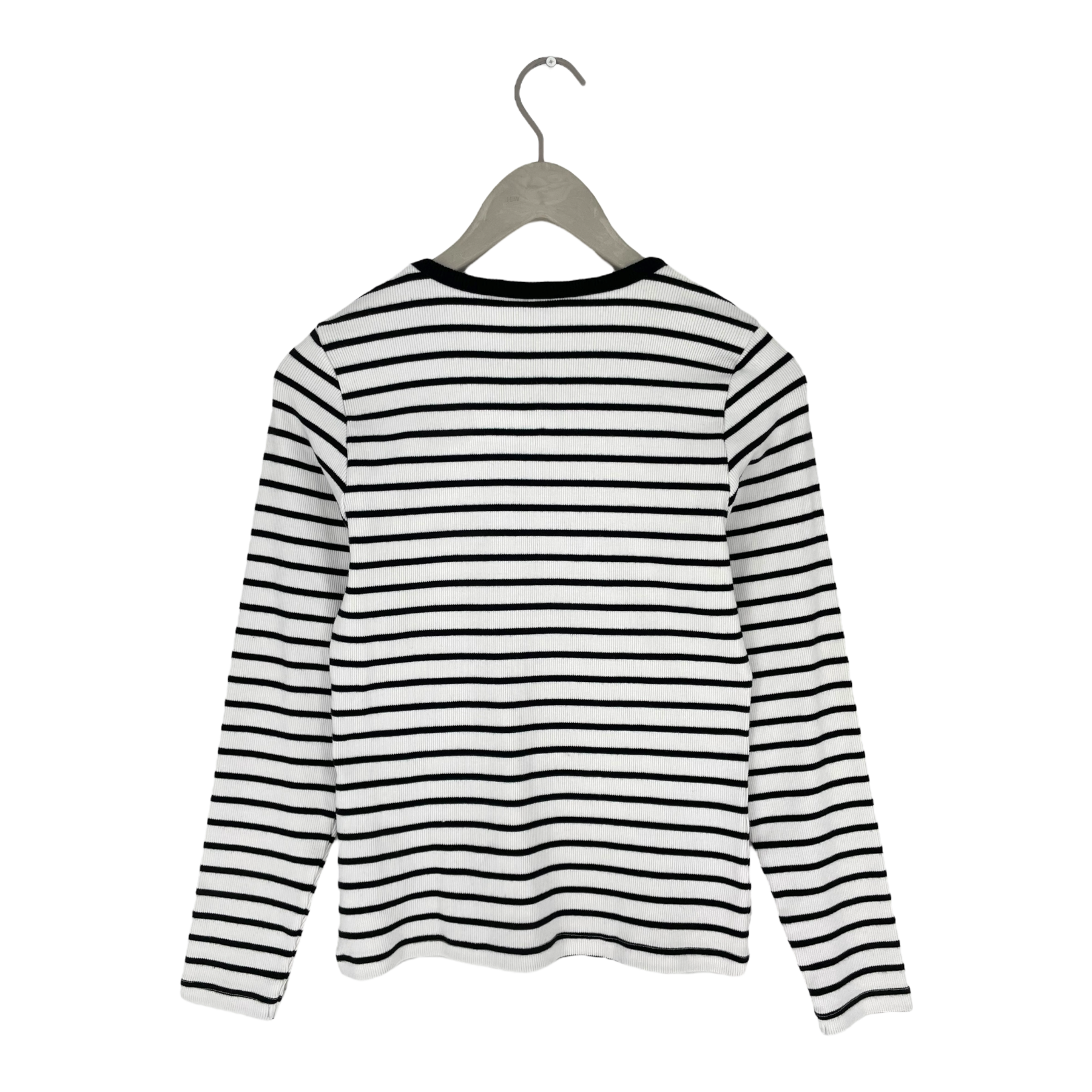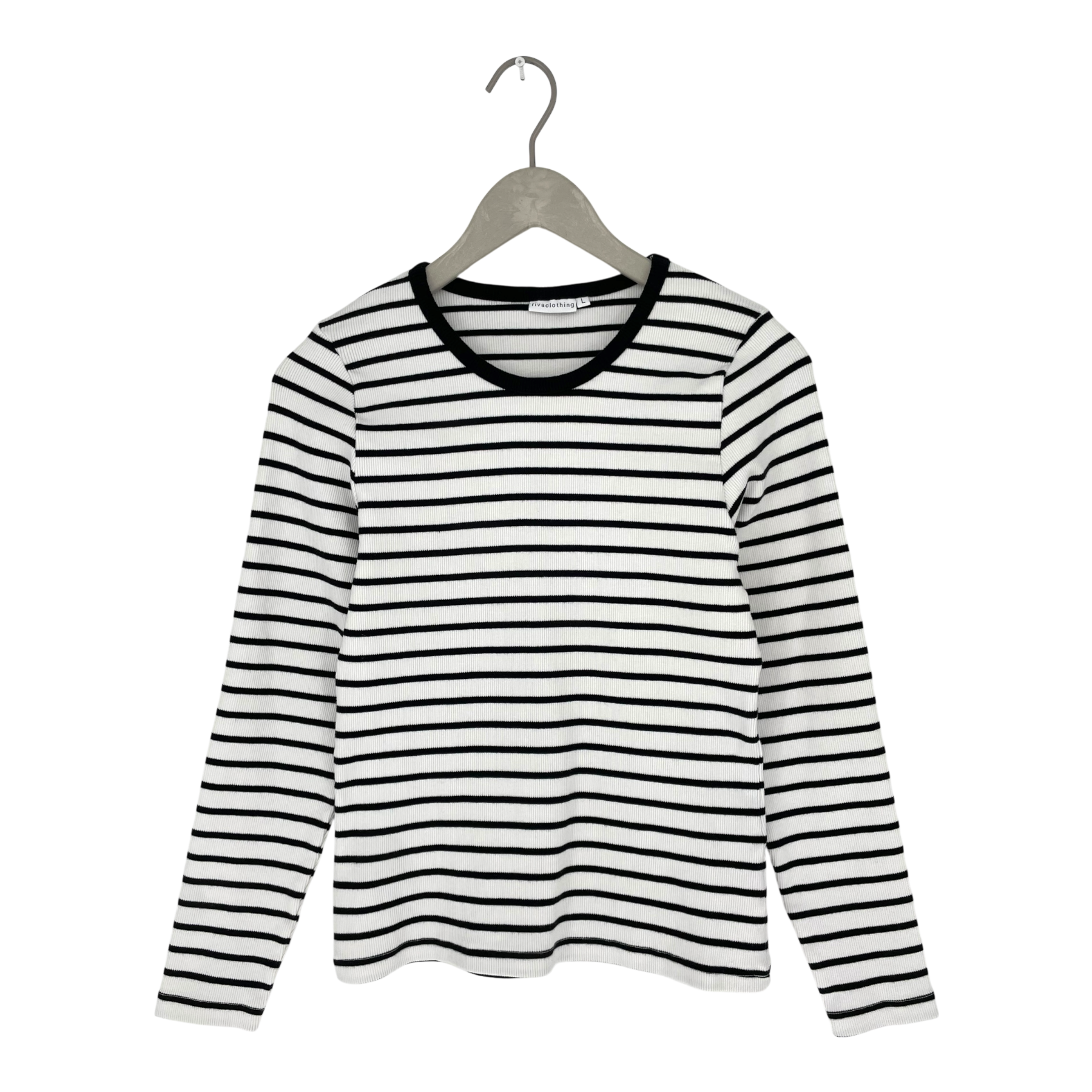 Riva Clothing ribbed shirt in striped print. The shirt has a rounded neck and long-sleeves.