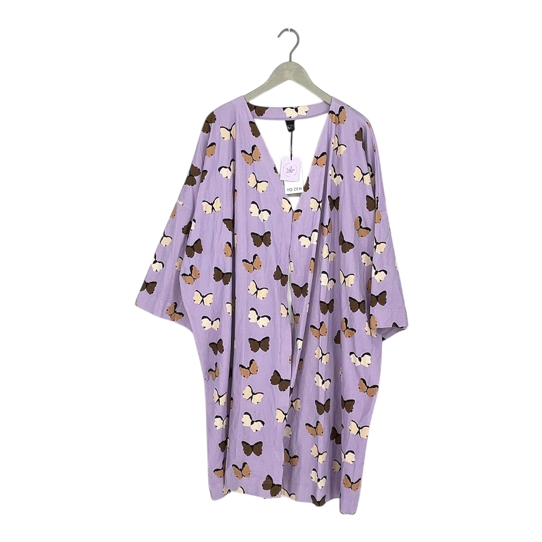 Yo Zen women's long kimono with a removable belt in butterfly print. Onesize fits S-L.