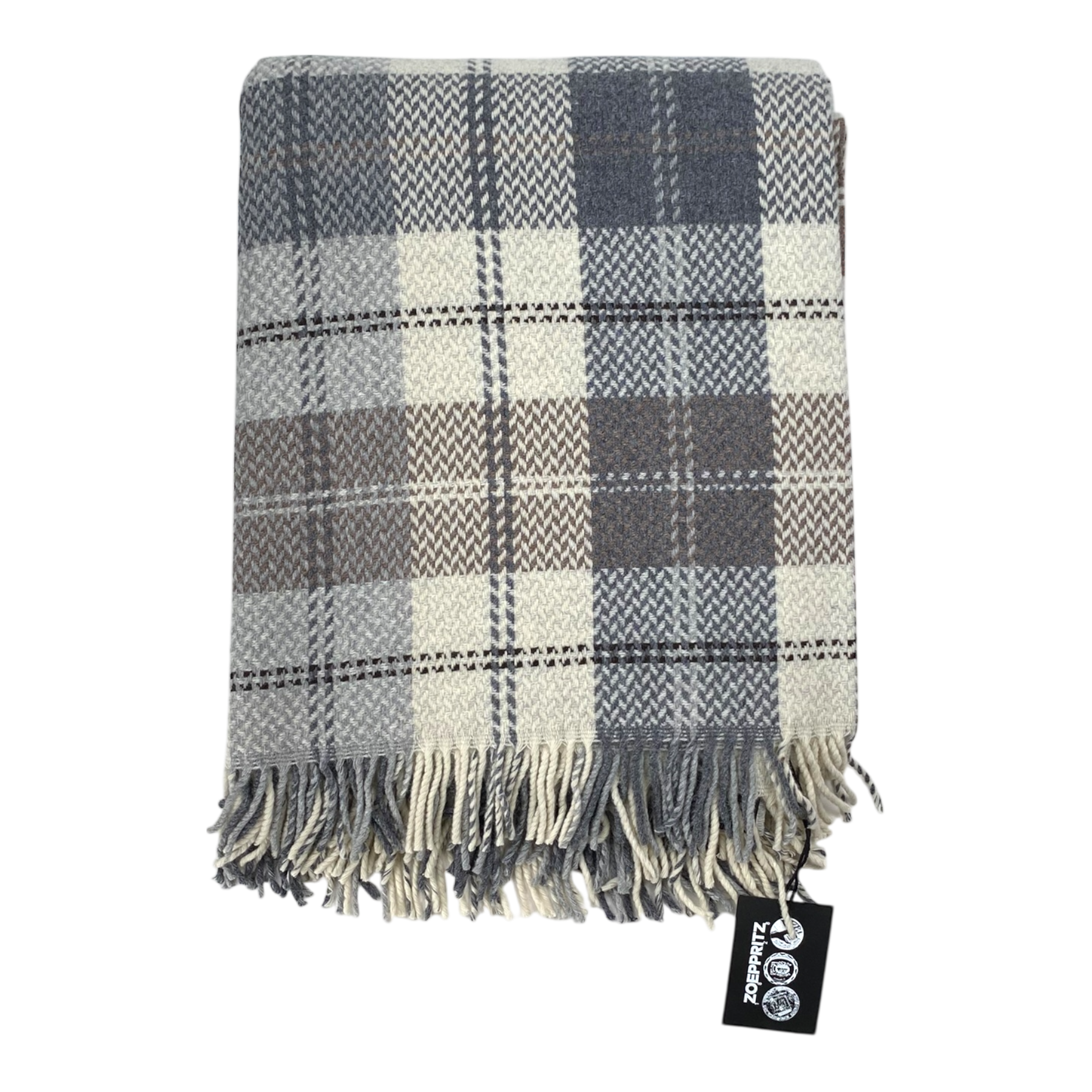 Zoeppritz knitted Herring Check wool blanket with fringes.