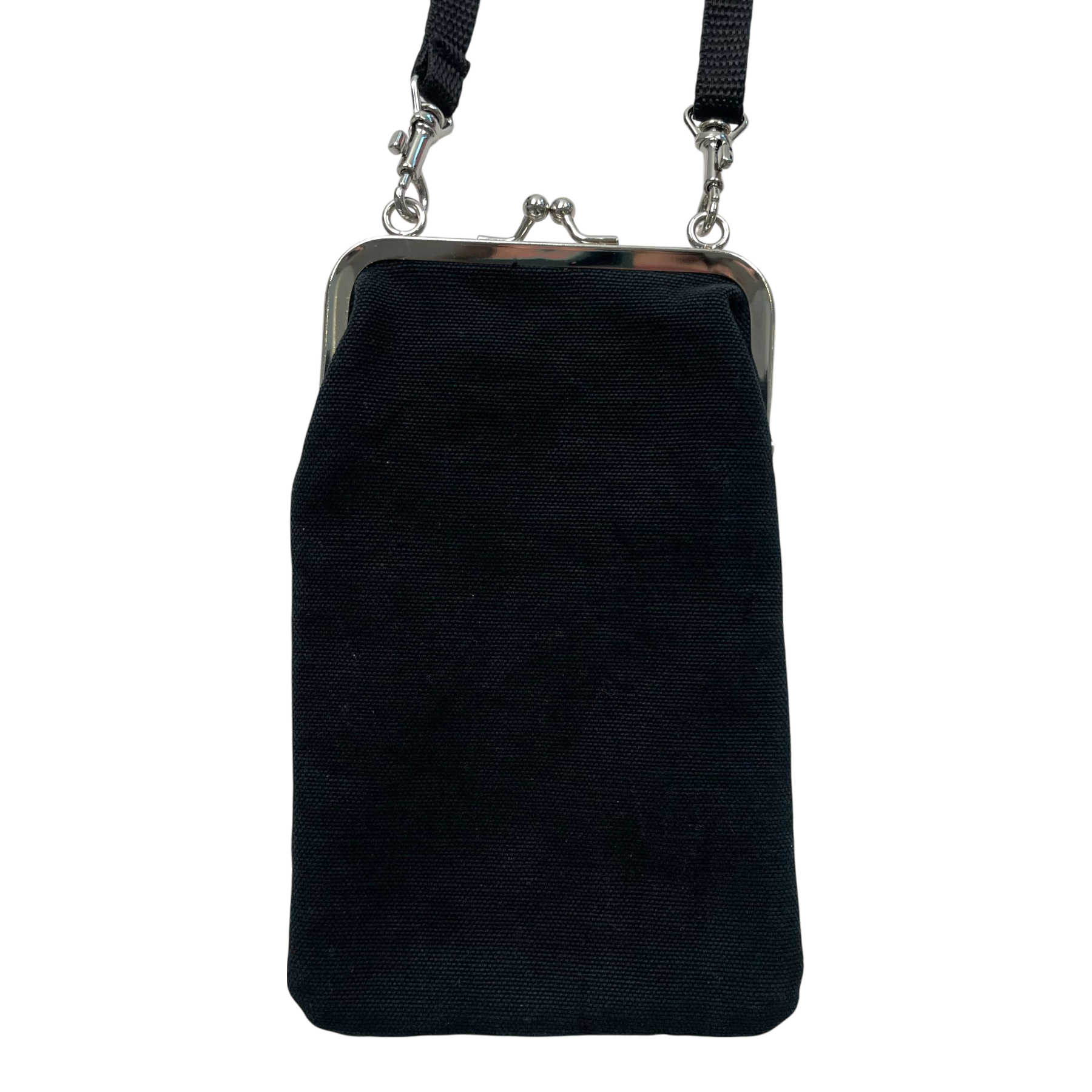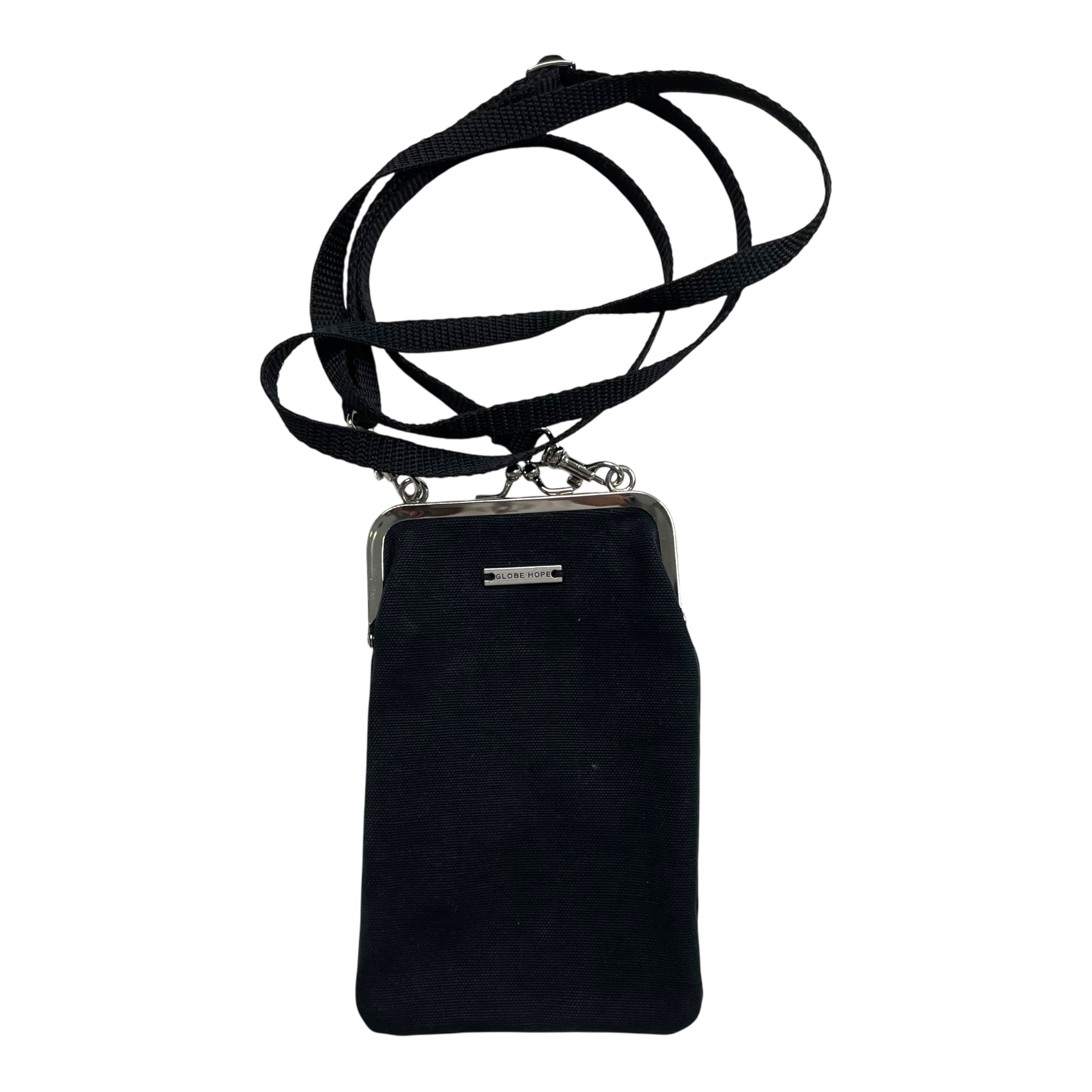 Globe Hope small canvas bag with a metal clasp closure. The bag comes with an adjustable and removable strap.