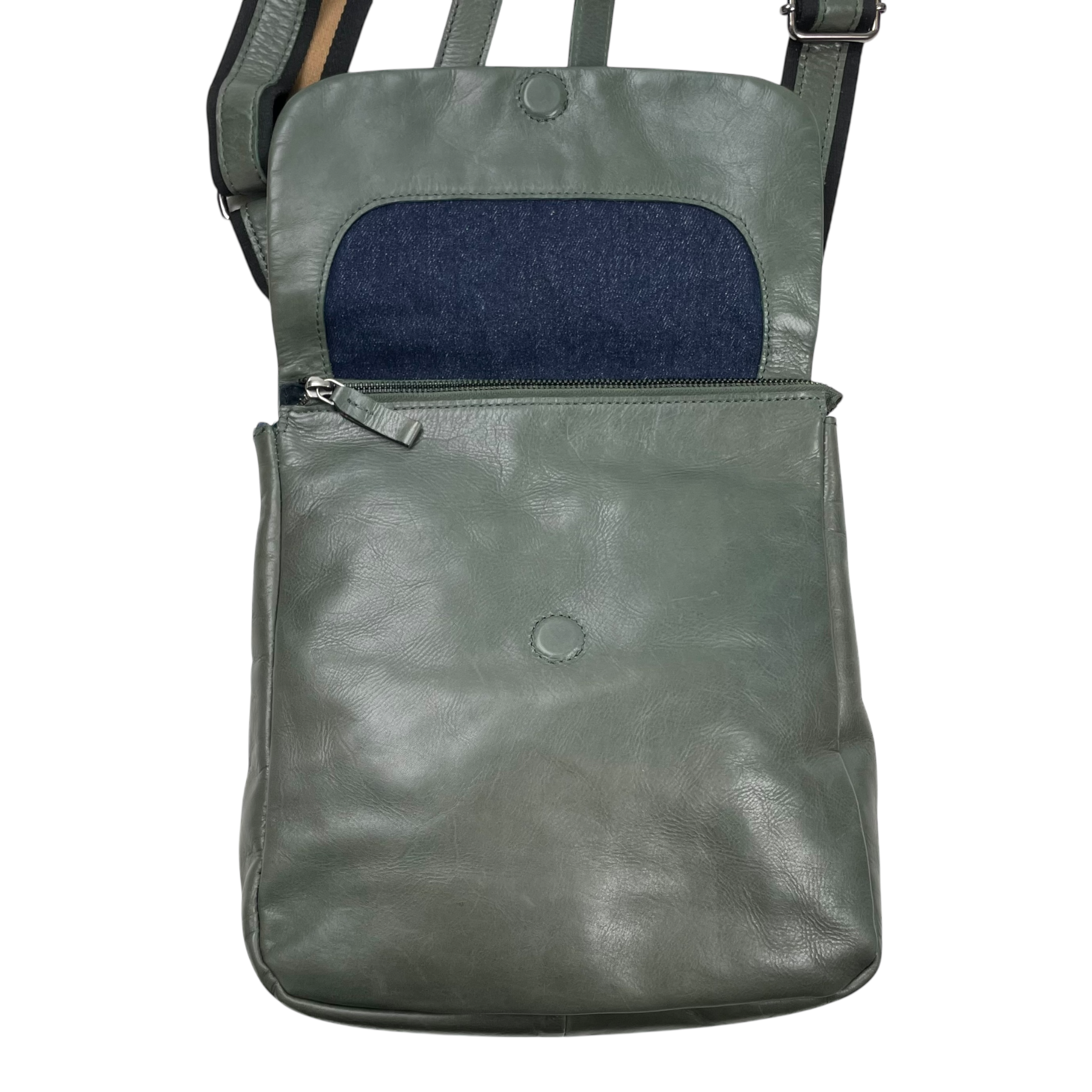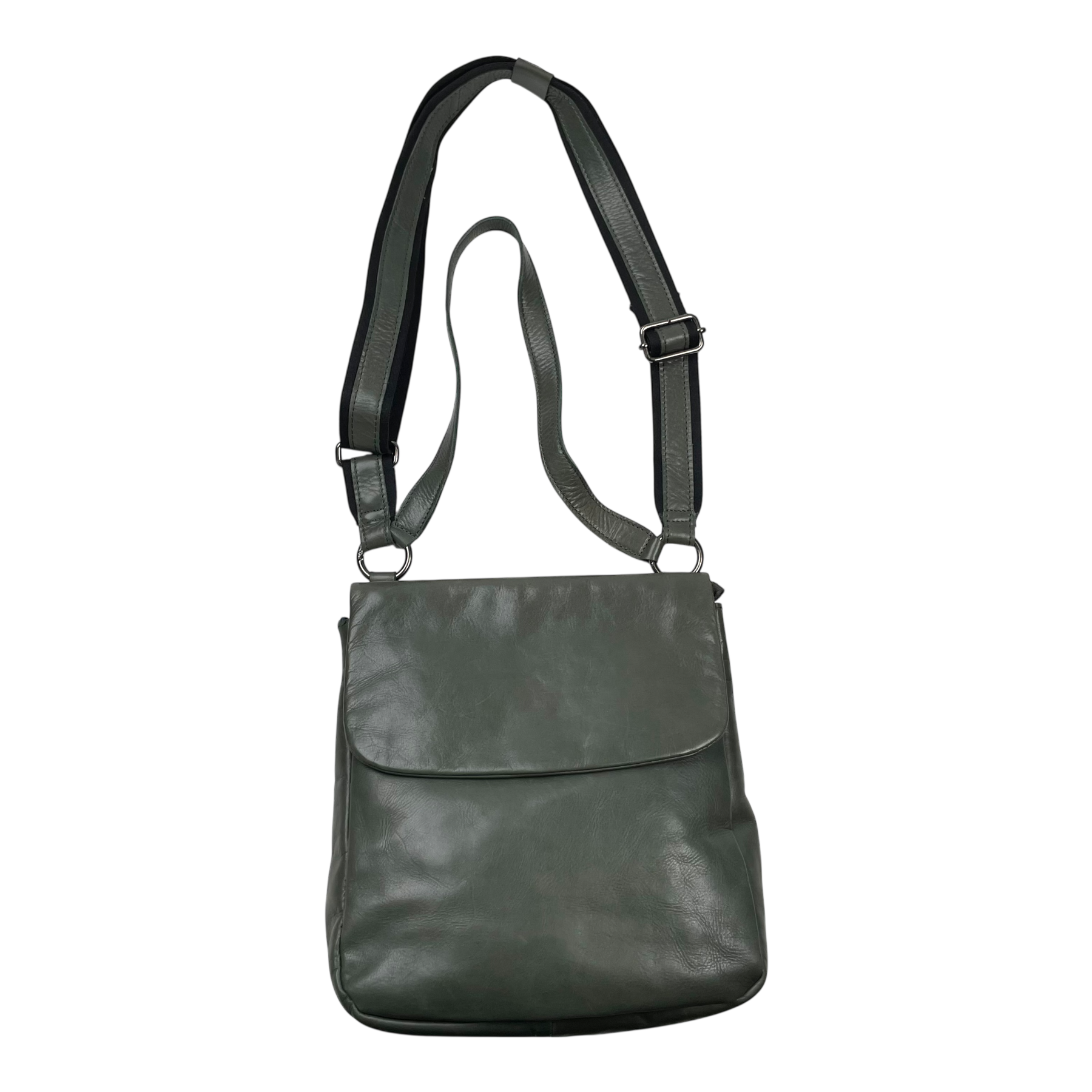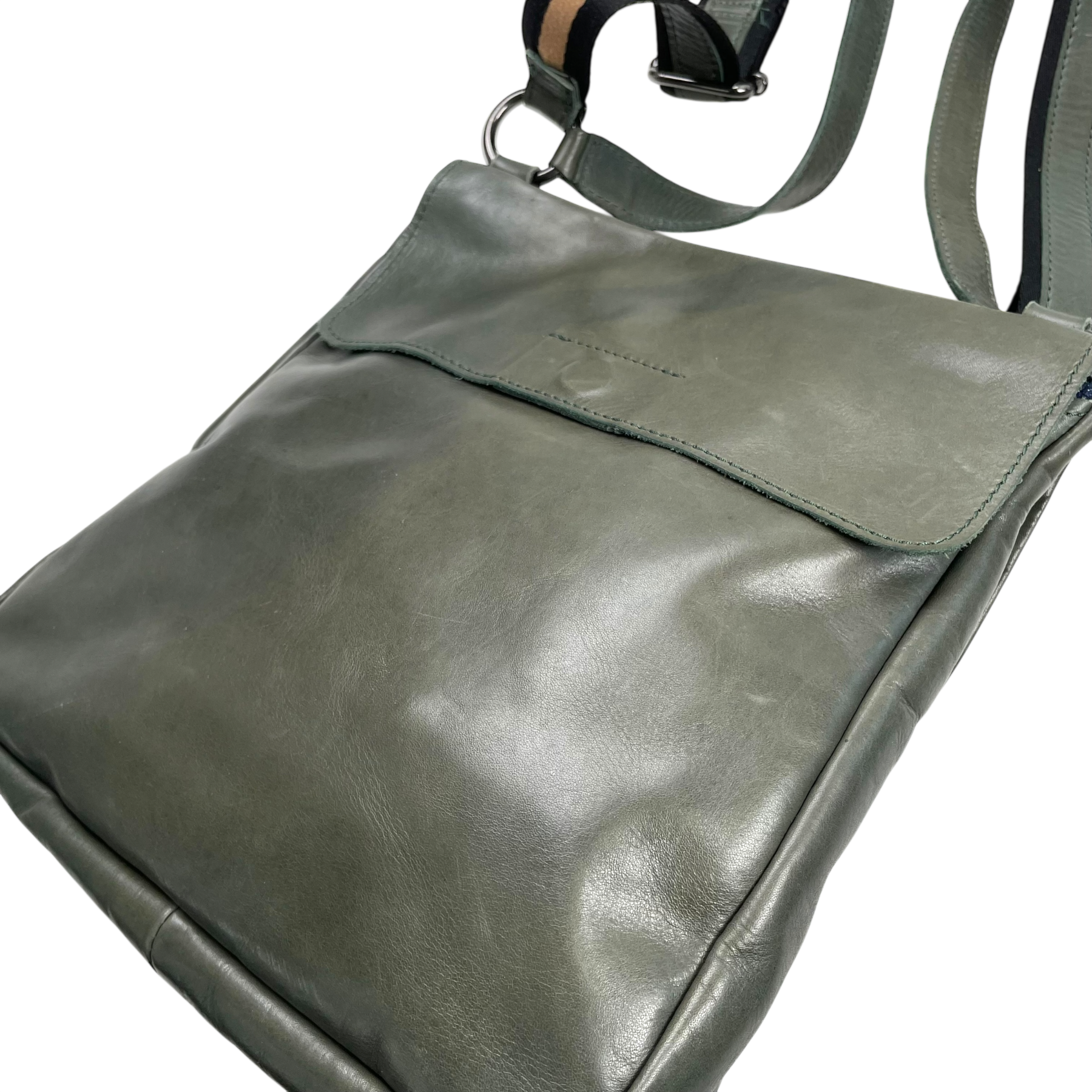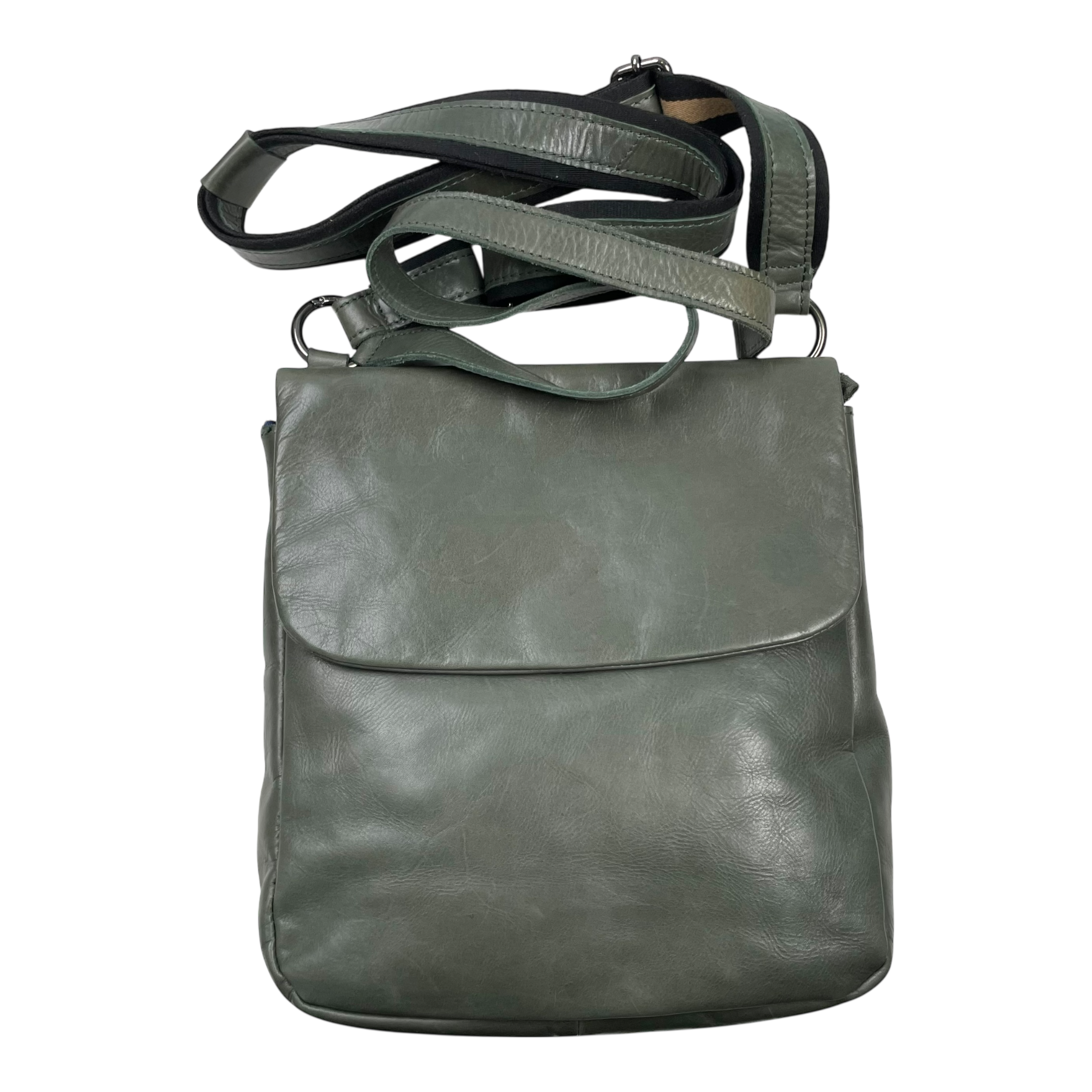 This bag looks neat from the front, but the leather on the back has an uneven coloring as shown in the pictures. That side will be resting against your body when wearing, so it doesn't show when wearing quite much.
