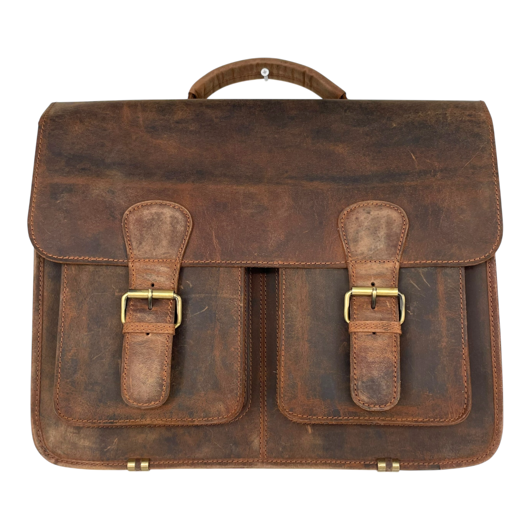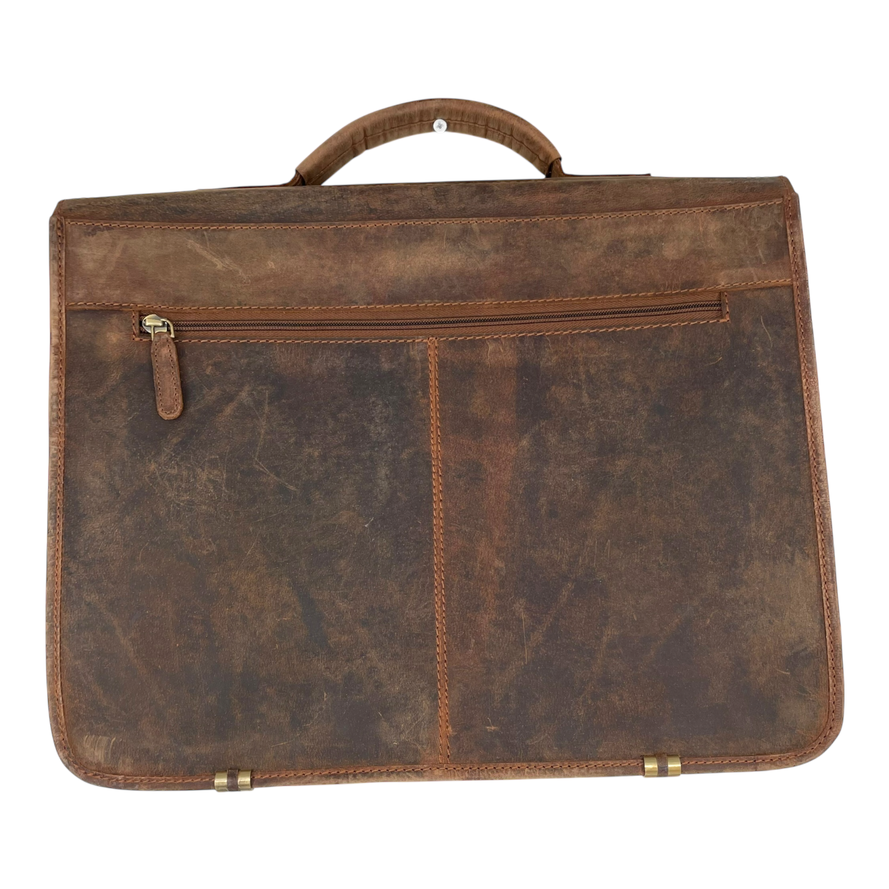 Holzrichter Berlin vintage style briefcase. This timeless briefcase is crafted from premium leather and designed for up to 15" laptops. It features a padded laptop compartment for secure storage and a detachable shoulder strap for flexible carry options. Ideal for work or travel, it blends classic style with everyday functionality.