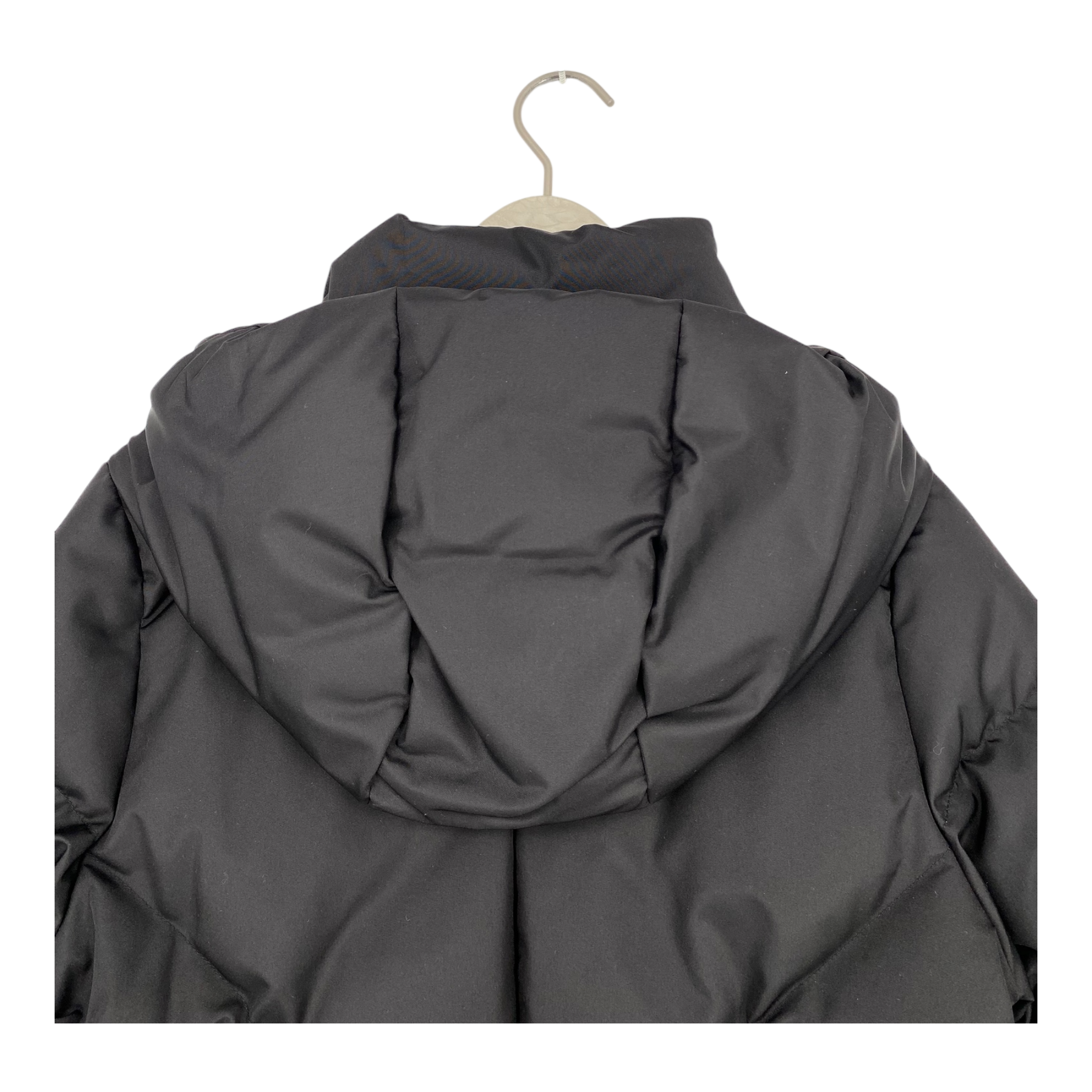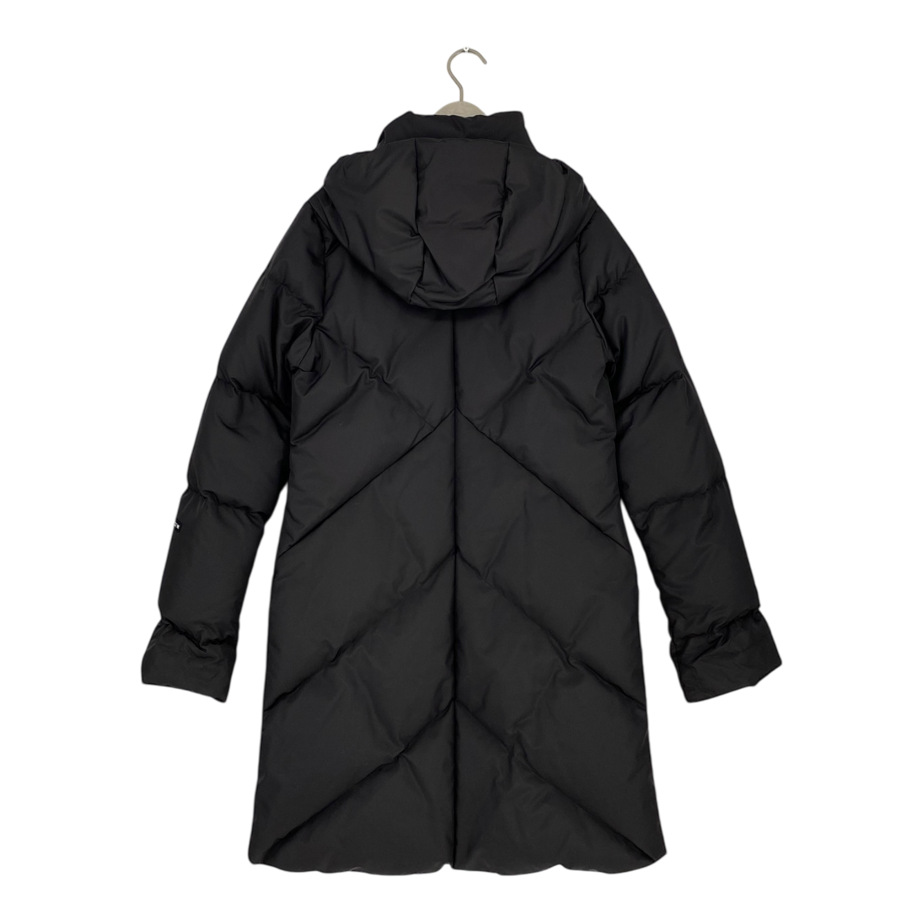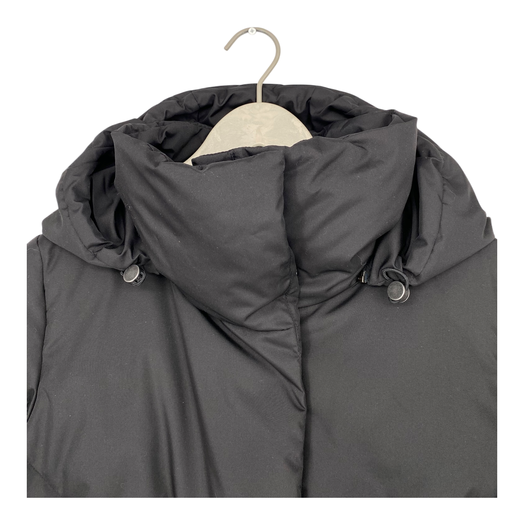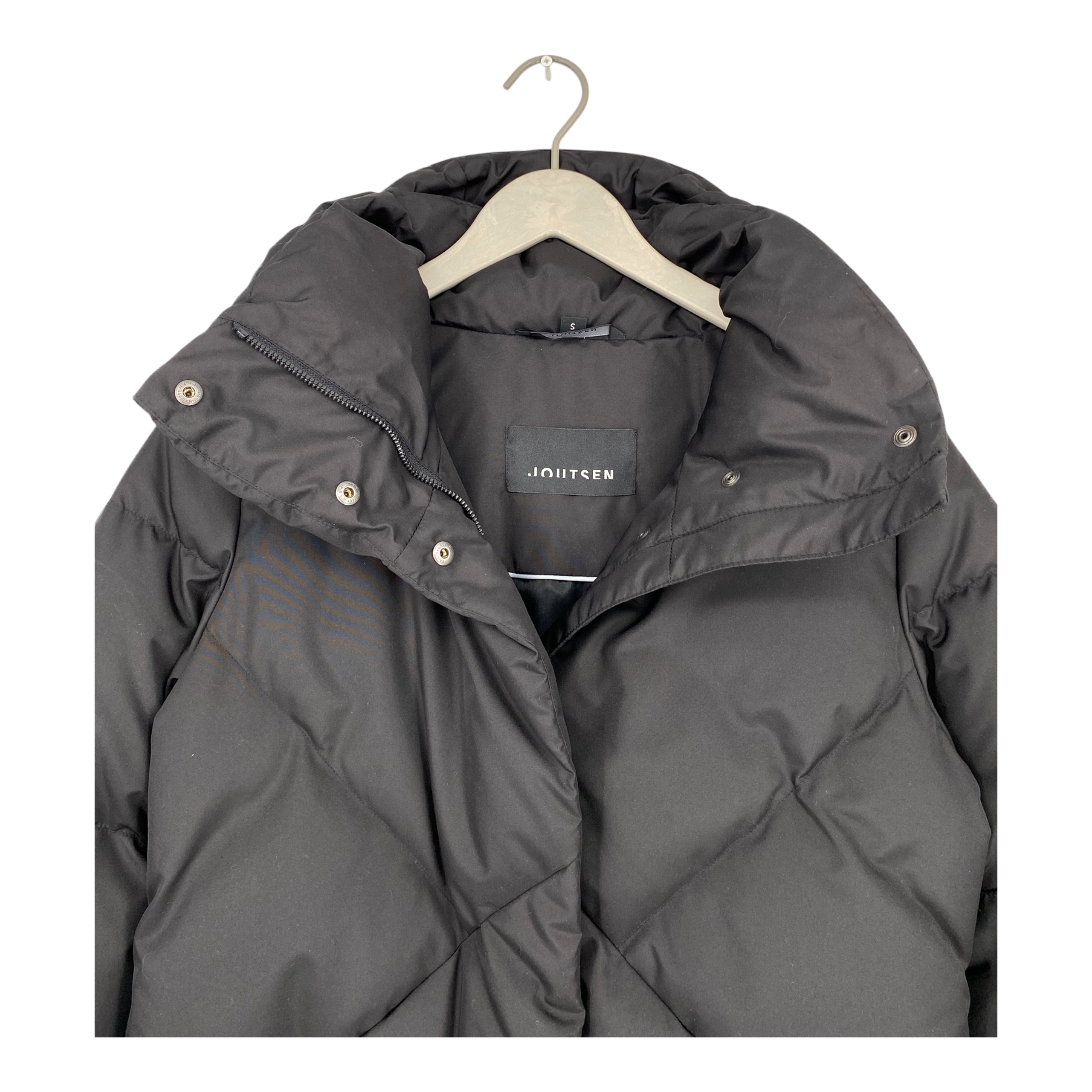 Joutsen Laulu jacket is a down jacket perfect for the colder weathers. There is two pockets with concealed zippers. The snap buttons and the double-slider fastening zipper adds comfortability and daily functionality in the front. There is a large warm hood that that can be adjusted with a drawstring or removed with a zipper. The sleeves can be rolled up for a better fit.