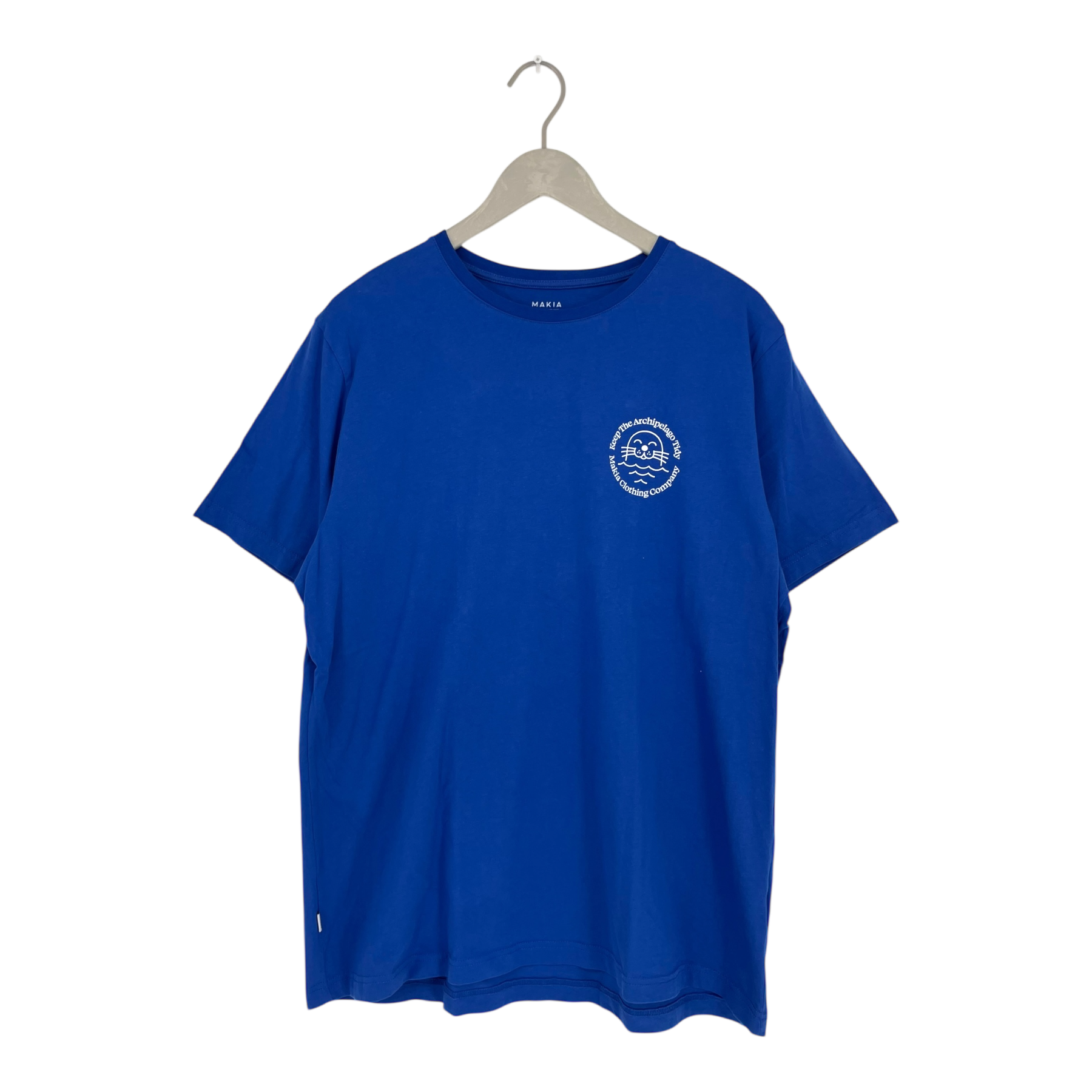 Makia t-shirt with a Keep the Archipelago Tidy logo on the front.