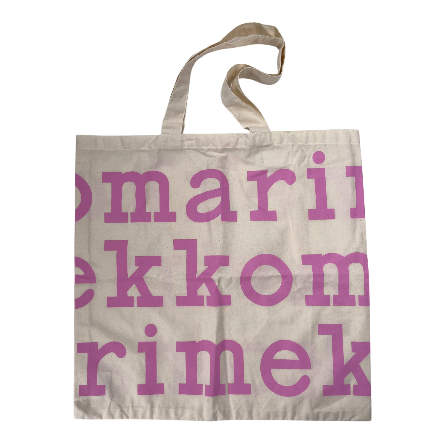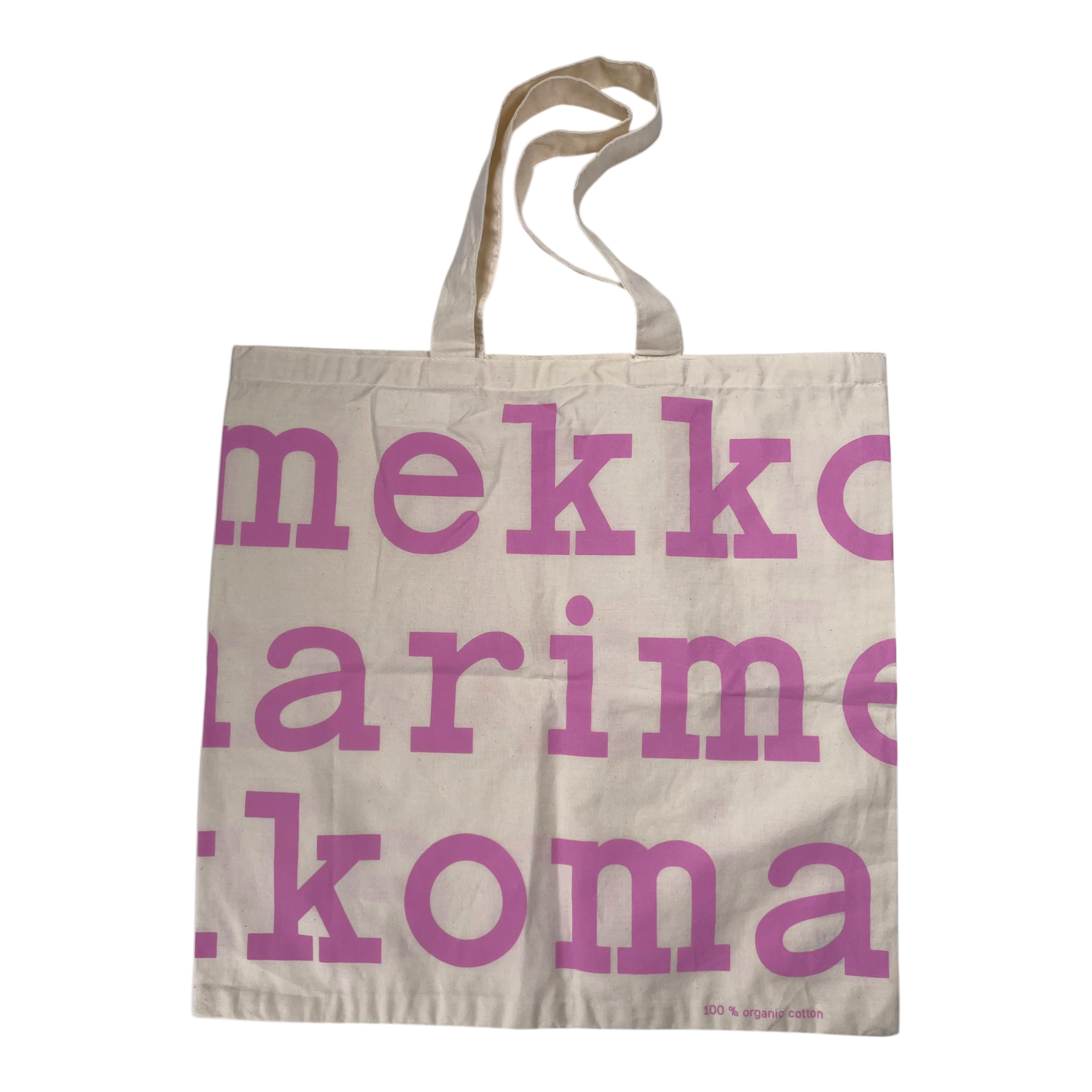 Marimekko tote shopping bag is made of lightweight cotton fabric, which features a logo pattern.