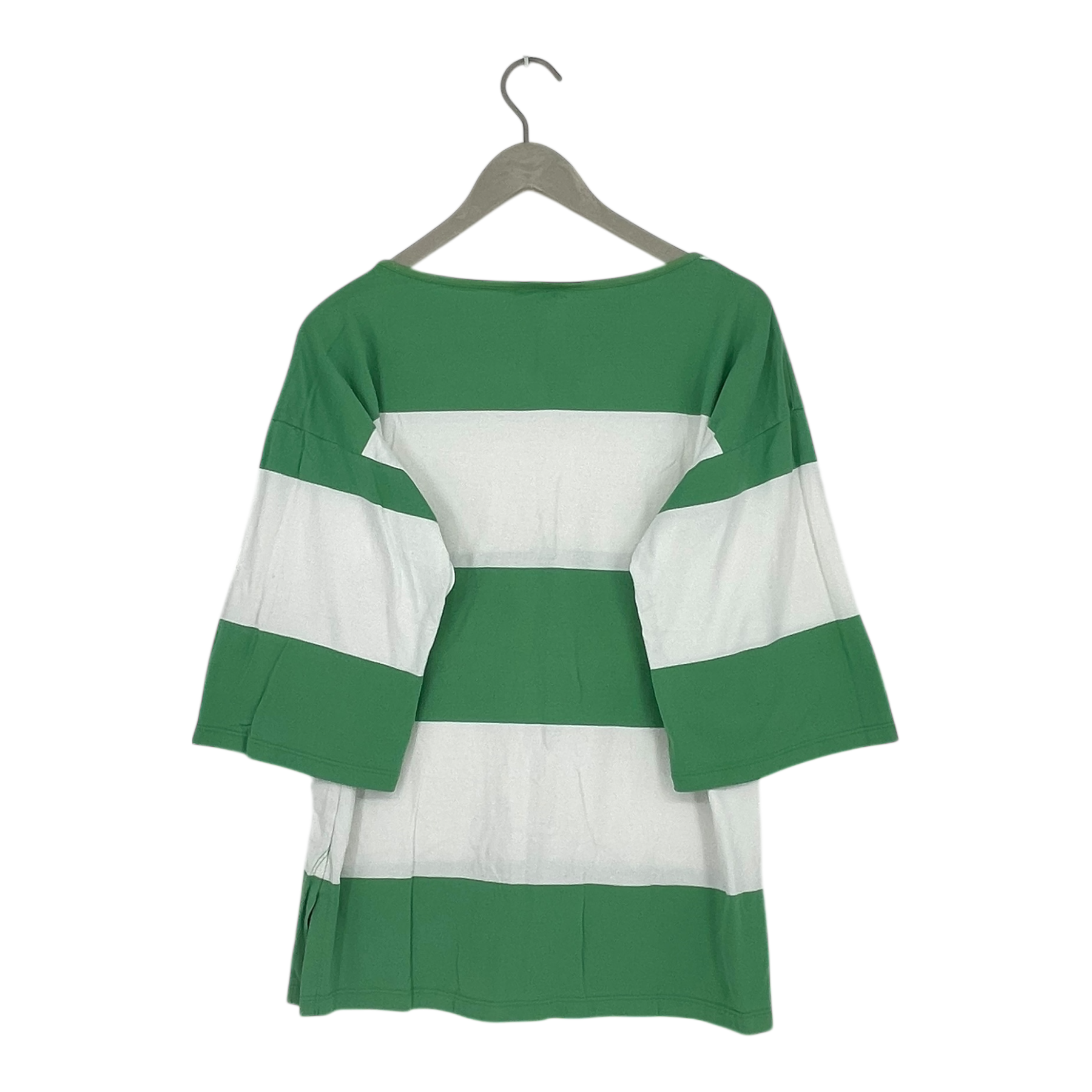 Marimekko by Mika Piirainen tricot shirt with wide half sleeves, wide round neckline and slits on the hemline. The color on the fabric has faded, as shown in the pictures.