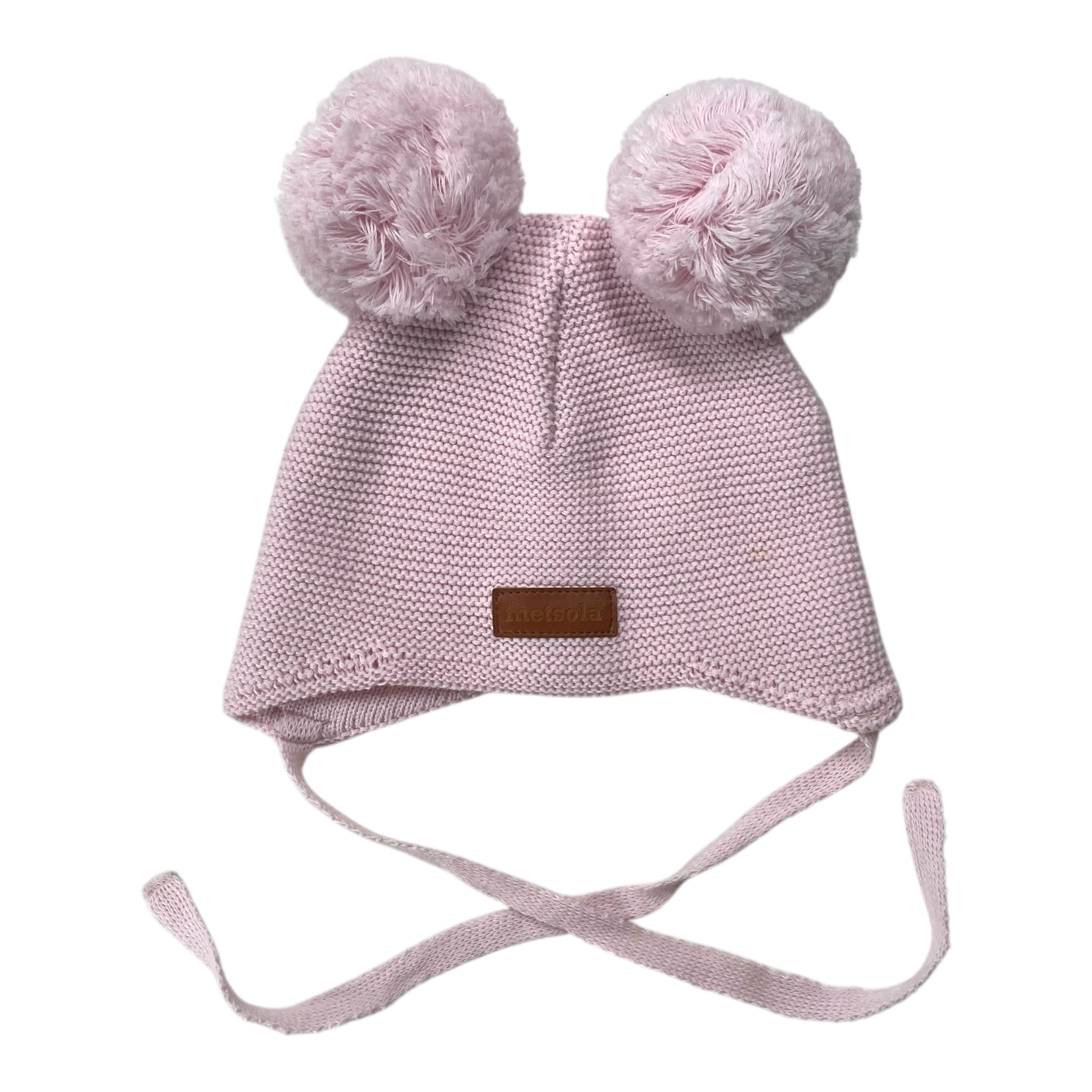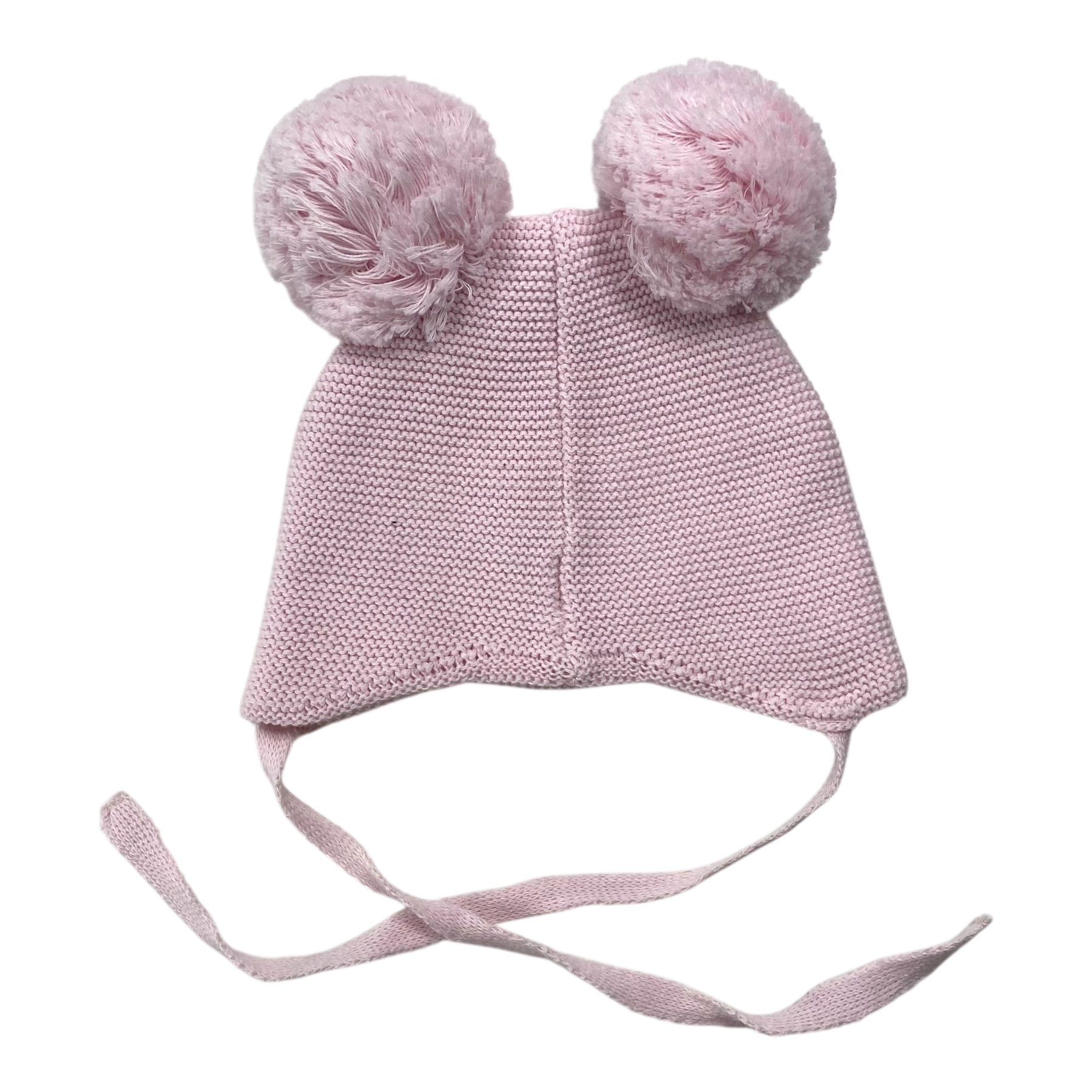 Metsola cotton knit 2 pom beanie, pink | 0-2m