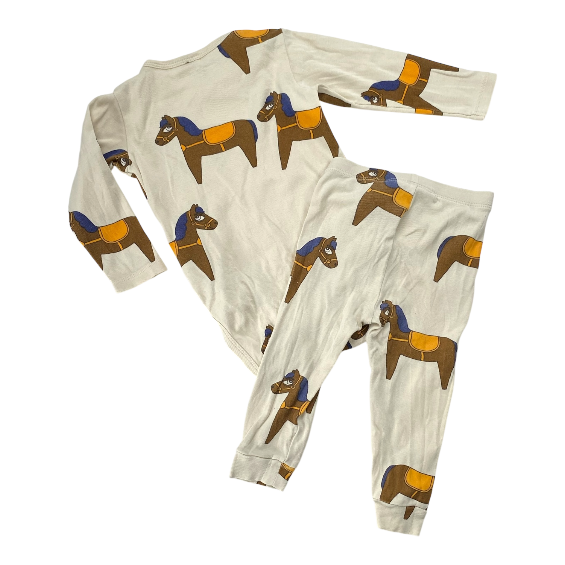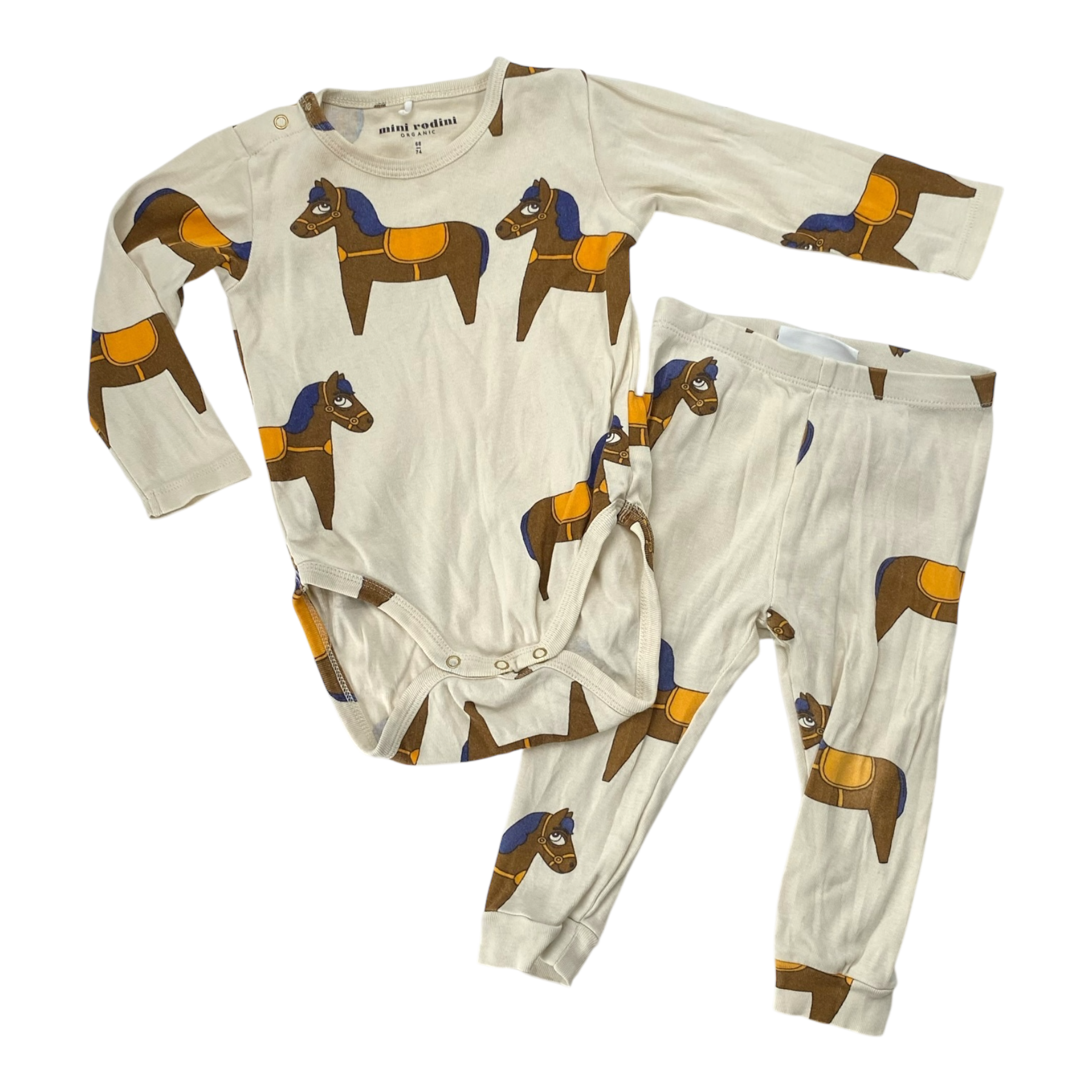 Mini Rodini long sleeve body with snap buttons and leggings in horses print.