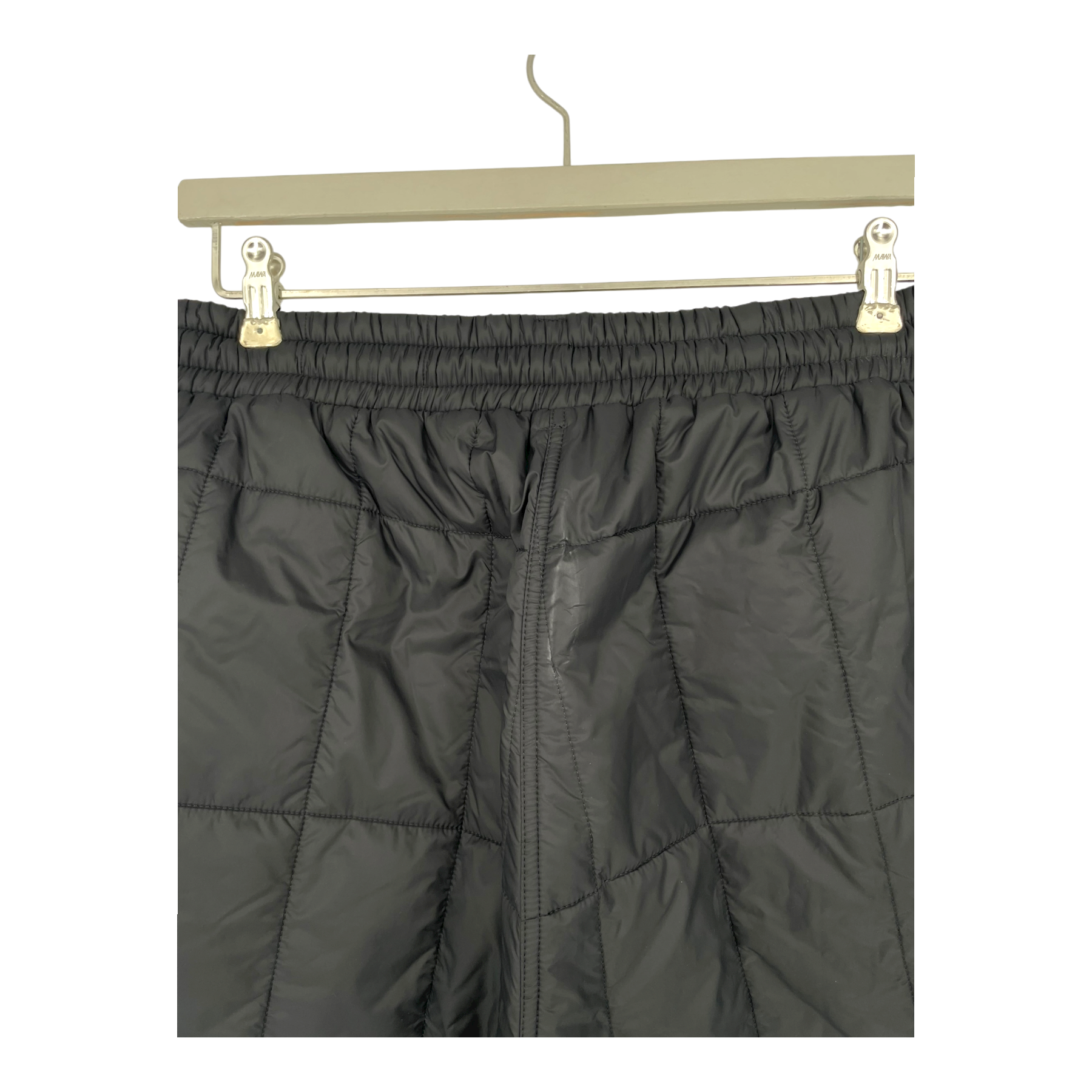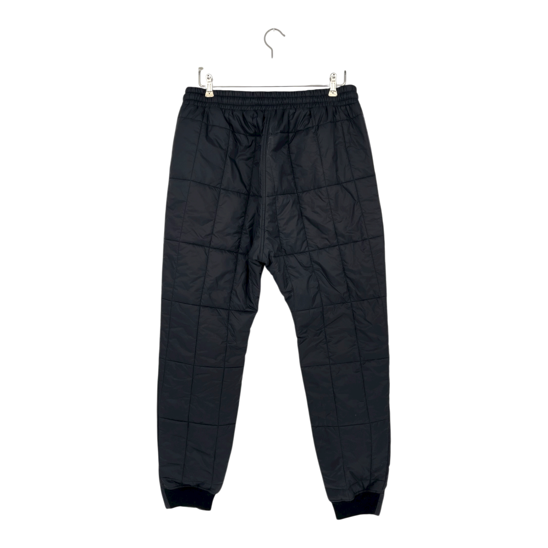 Nomen Nescio 219 quilted slim pants: light yet warm slim-fit quilted pants with a merino rib detail at the back of the ankle. Elastic waistband, drawstring and side pockets. Made of recycled materials that repel humidity, dirt and wind.