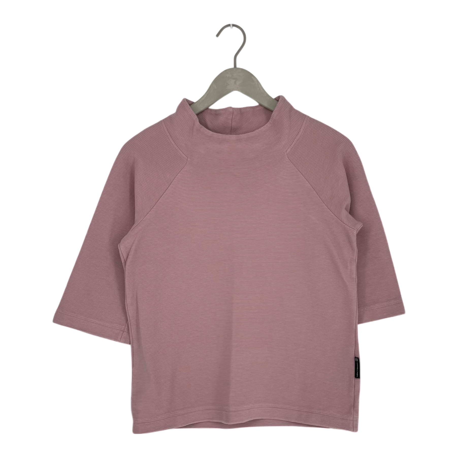 Ommellinen shirt with raised boat neck collar and 3/4 sleeves. The material of the shirt is striped.