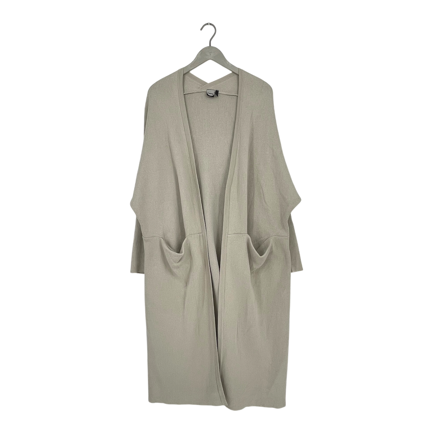 Papu women's long split cardigan with dropped shoulders and pockets in the front.
