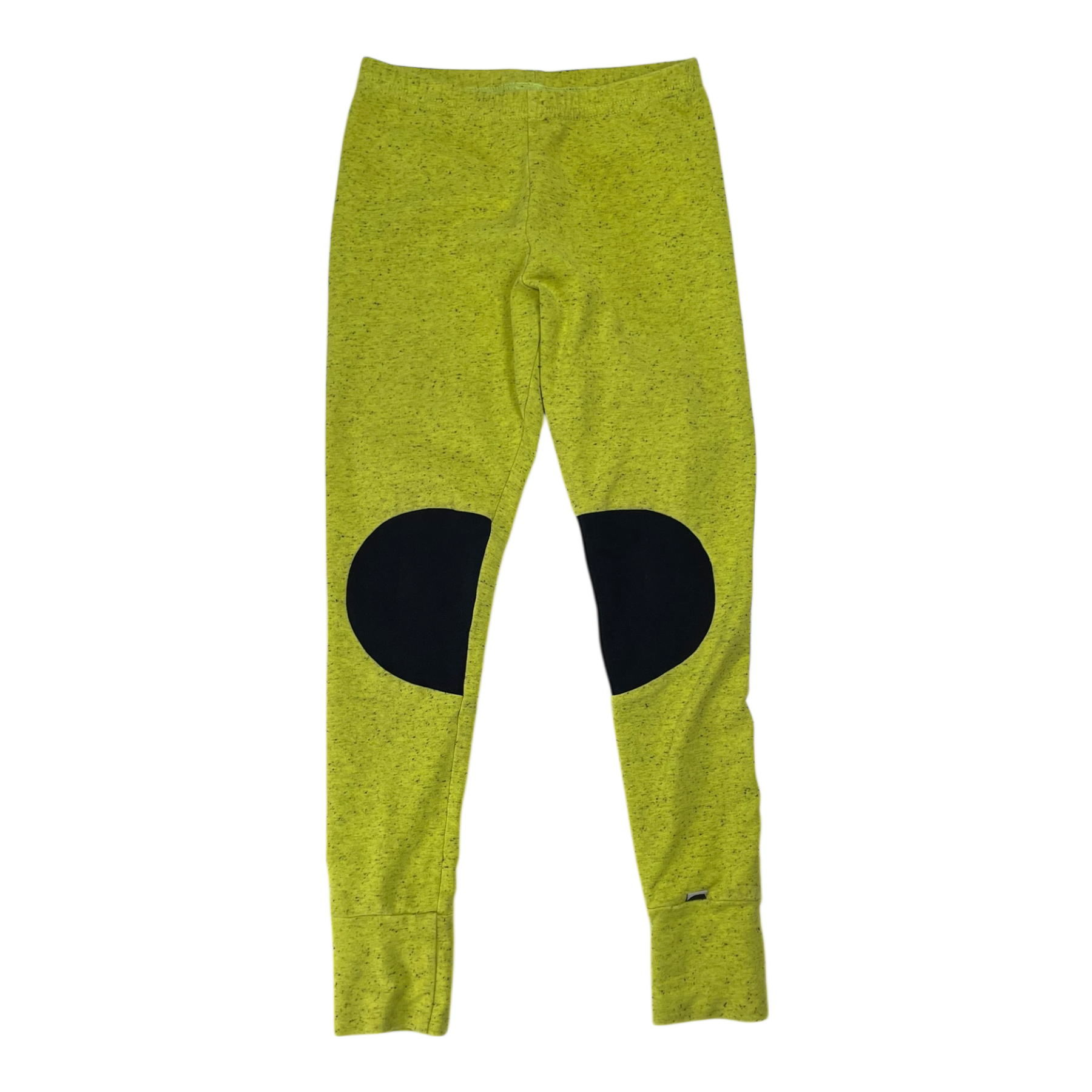 Papu leggings with contrast knee patches. Made from elastic organic cotton that feels comfortable to wear. Foldable leg ends for a longer fit for one child.
