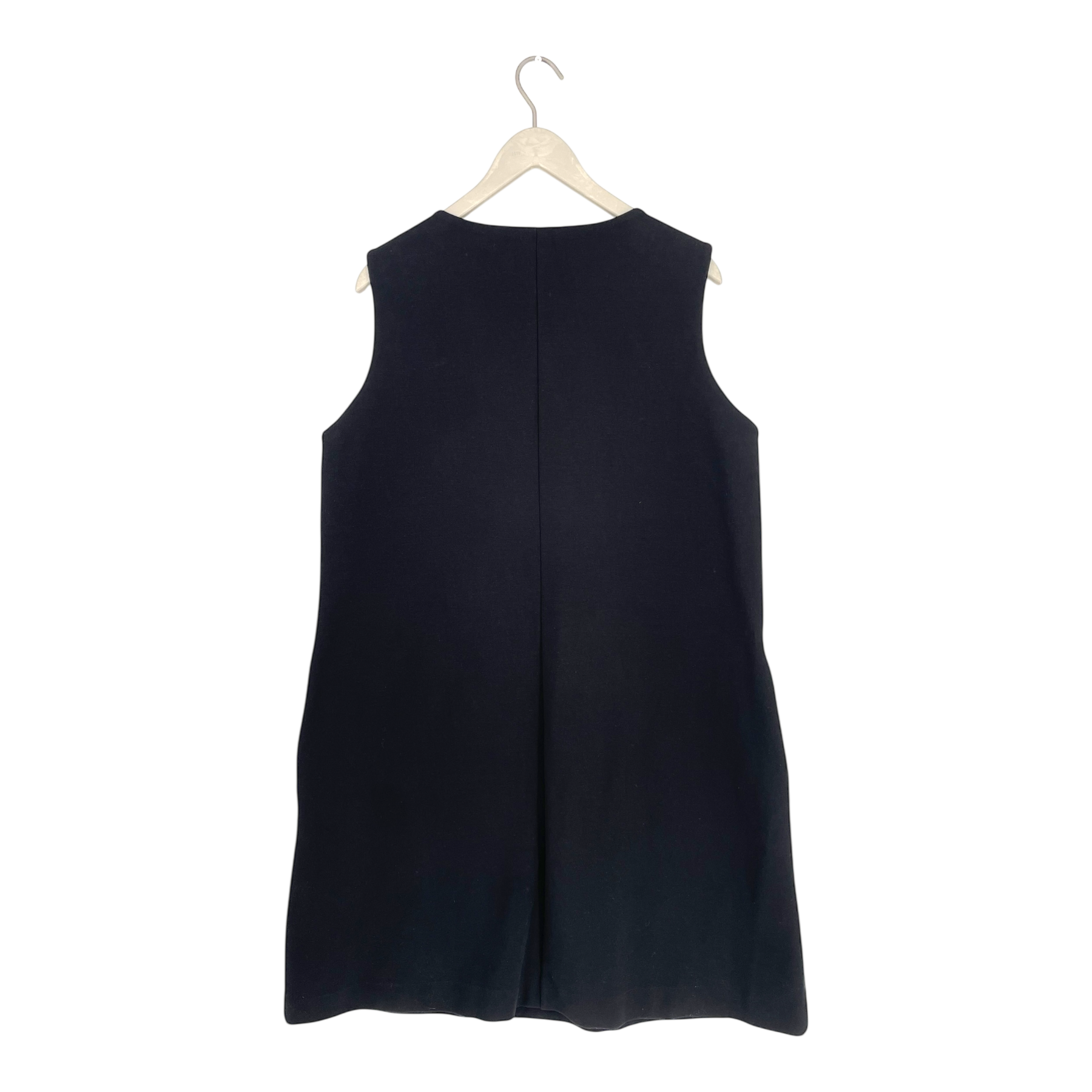 Papu sleeveless dress with side pockets, round neck, cut and sew detail on the center back.