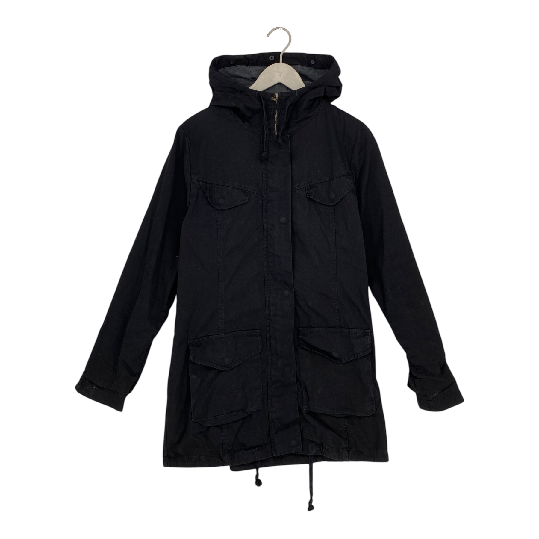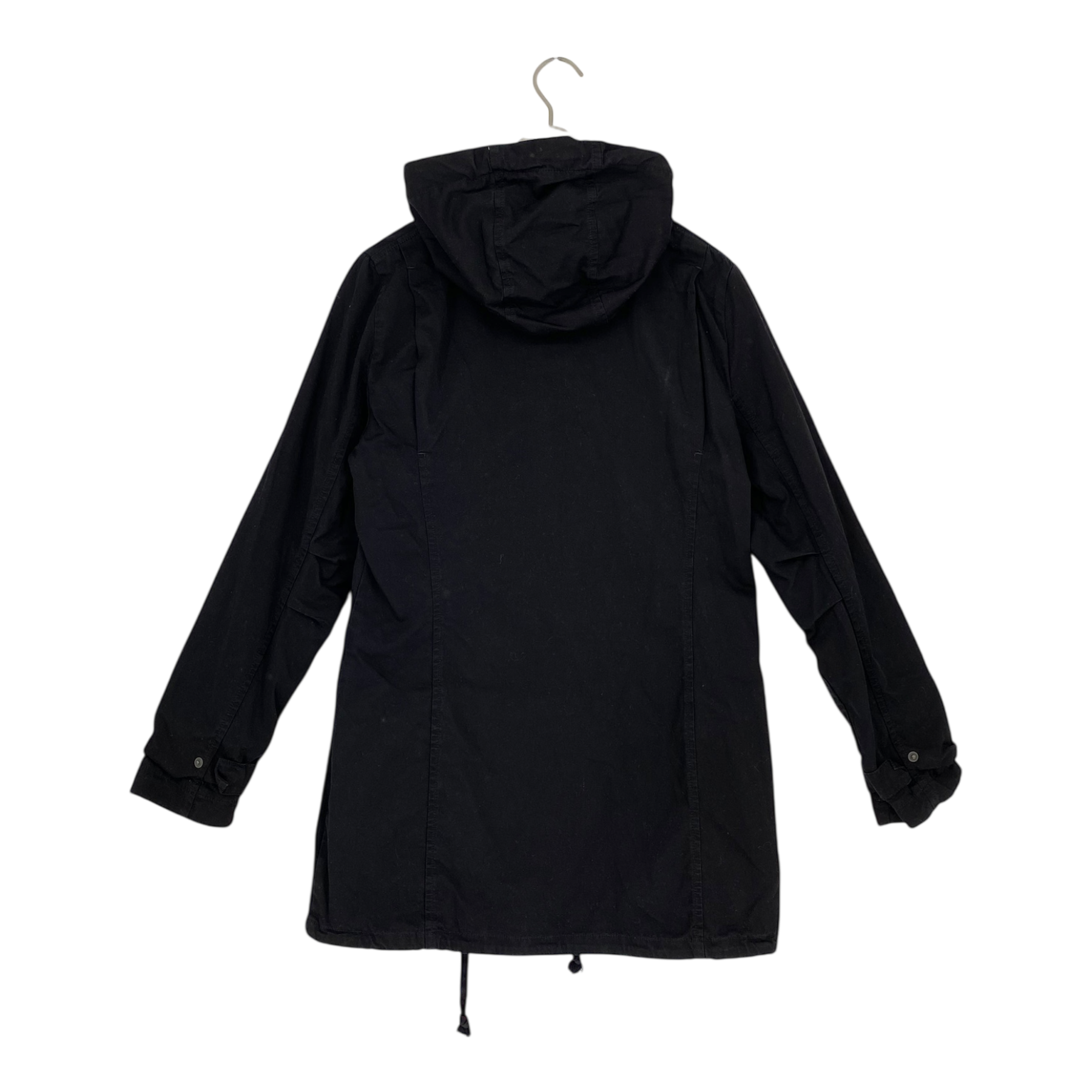 R-collection parka jacket with zipper fastening and zipper pockets. String tightening on the hem. The jacket features a grey lining and is treated with Aquatx for water and dirt resistance.