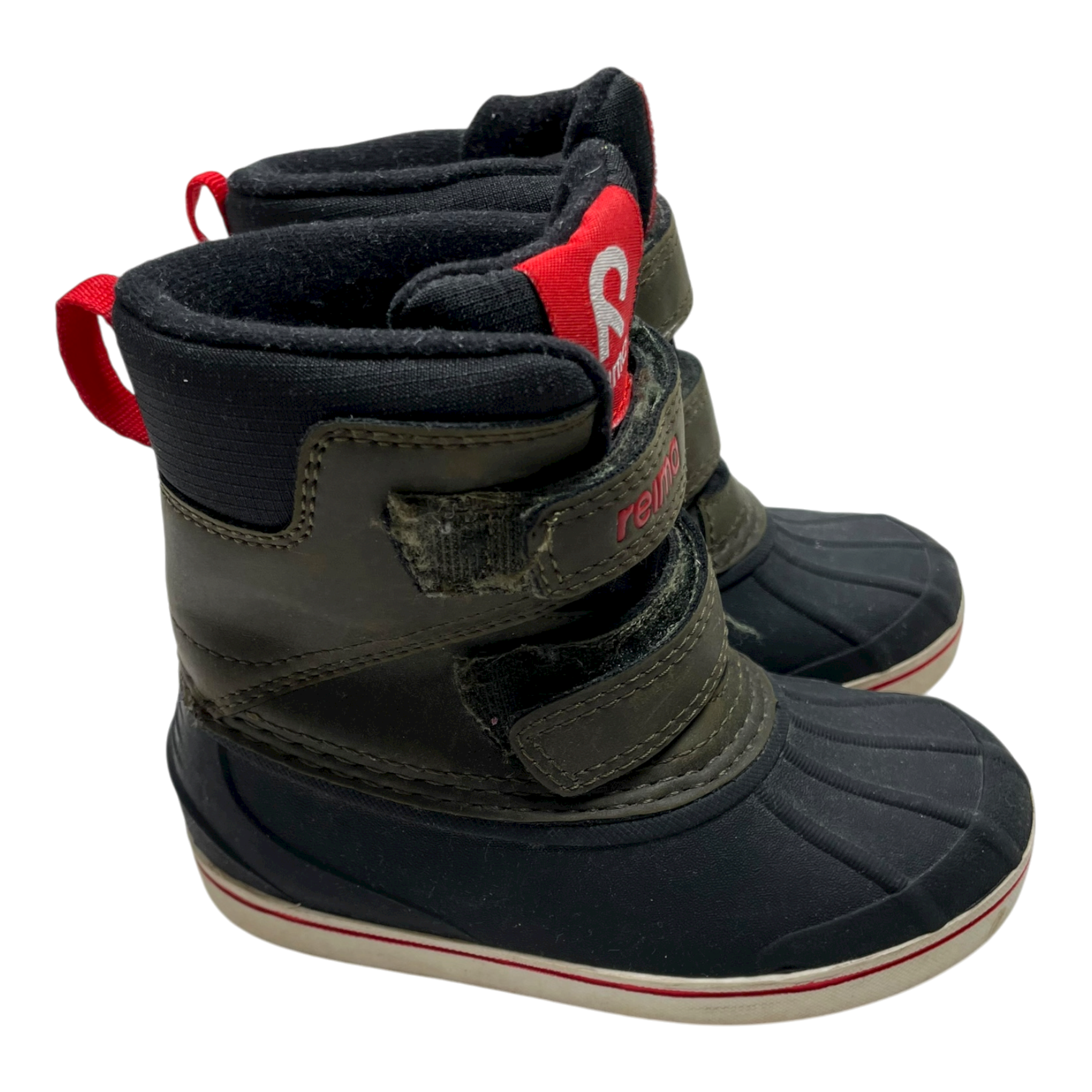 Reima Coconi winter shoes with waterproof galoshes are a great choice for winter. The uppers are made of synthetic material, and the warm wool mix lining keep the toes warm. Thanks to the velcro fastening the shoes are easy to put on and the kid is ready for outdoors in a flash.