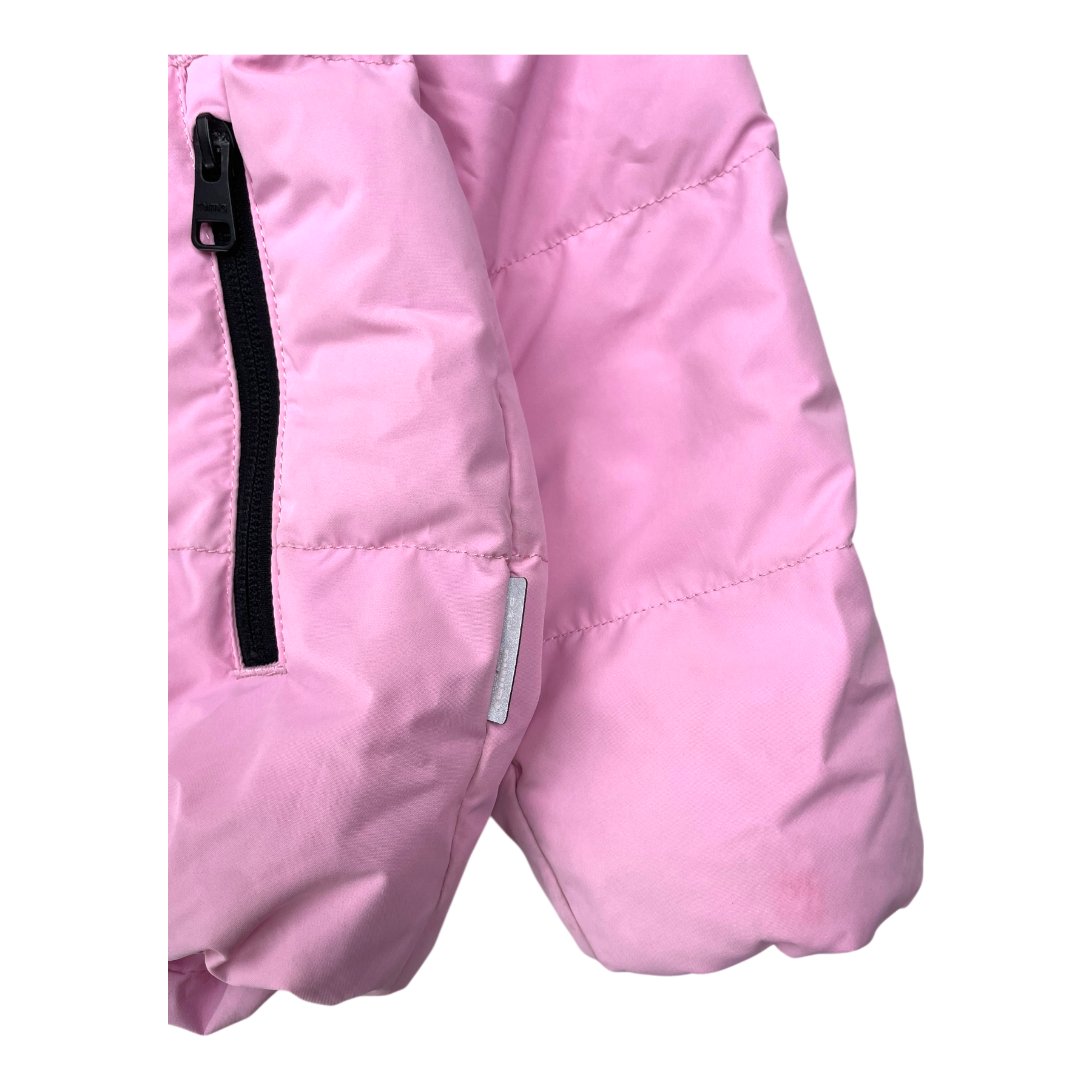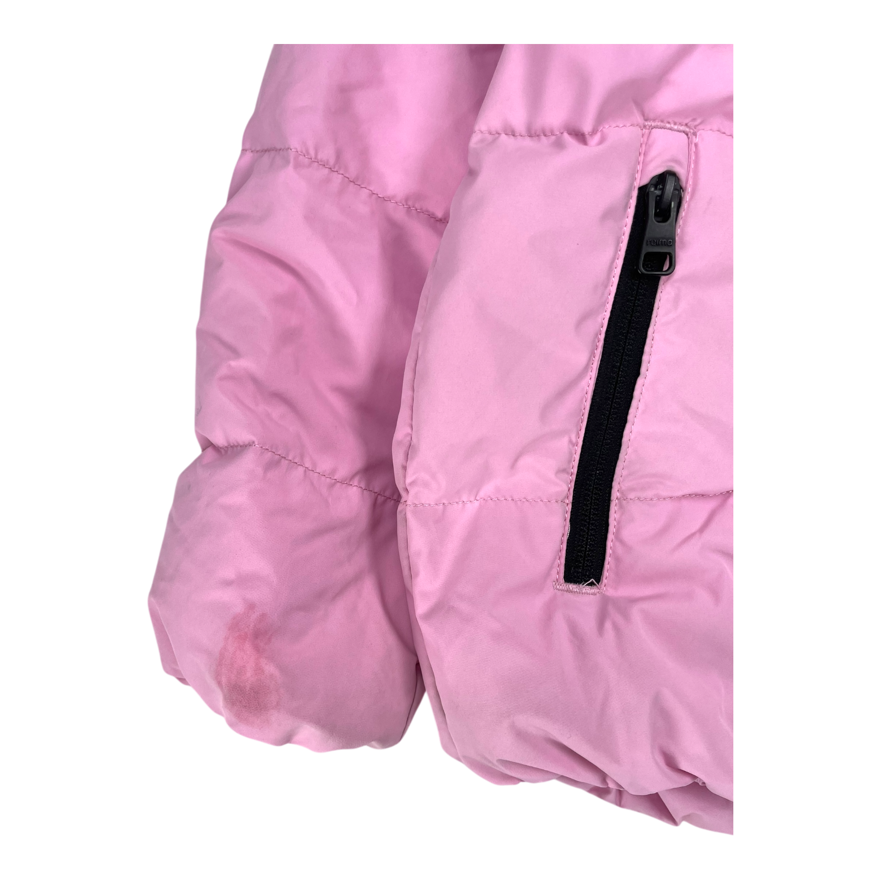 Reima Paimio down winter jacket with removable hood, zip pockets on sides, zip closure, and reflective details. The jacket is very warm and originally waterproof up to 10,000mm water column.