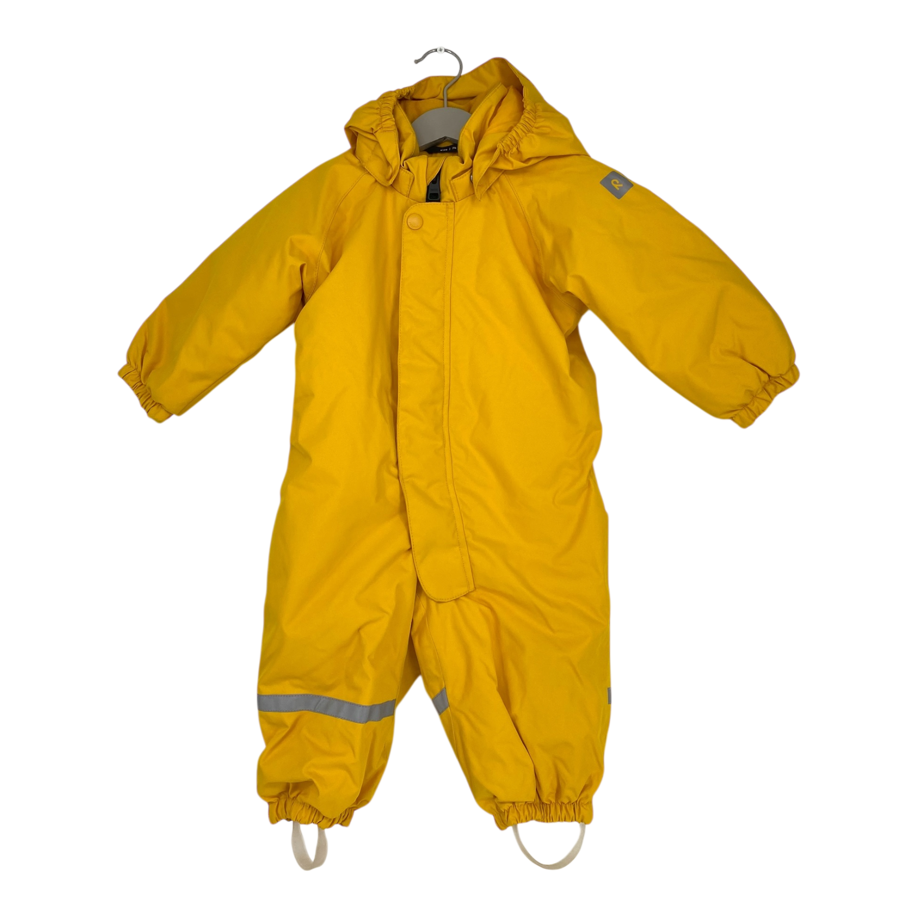 Reima Tuohi winter overall with detachable hood, durable foot loops, and zip closure. The material is originally wind- and waterproof.