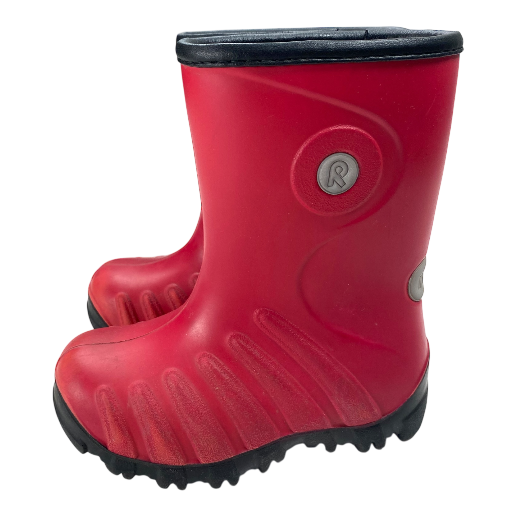 Reima winter rain boots are waterproof with extra warm fleece lining. They are super easy to pull on and keeps your feet warm and dry. The item has some tiny signs of use as seen in the pictures.