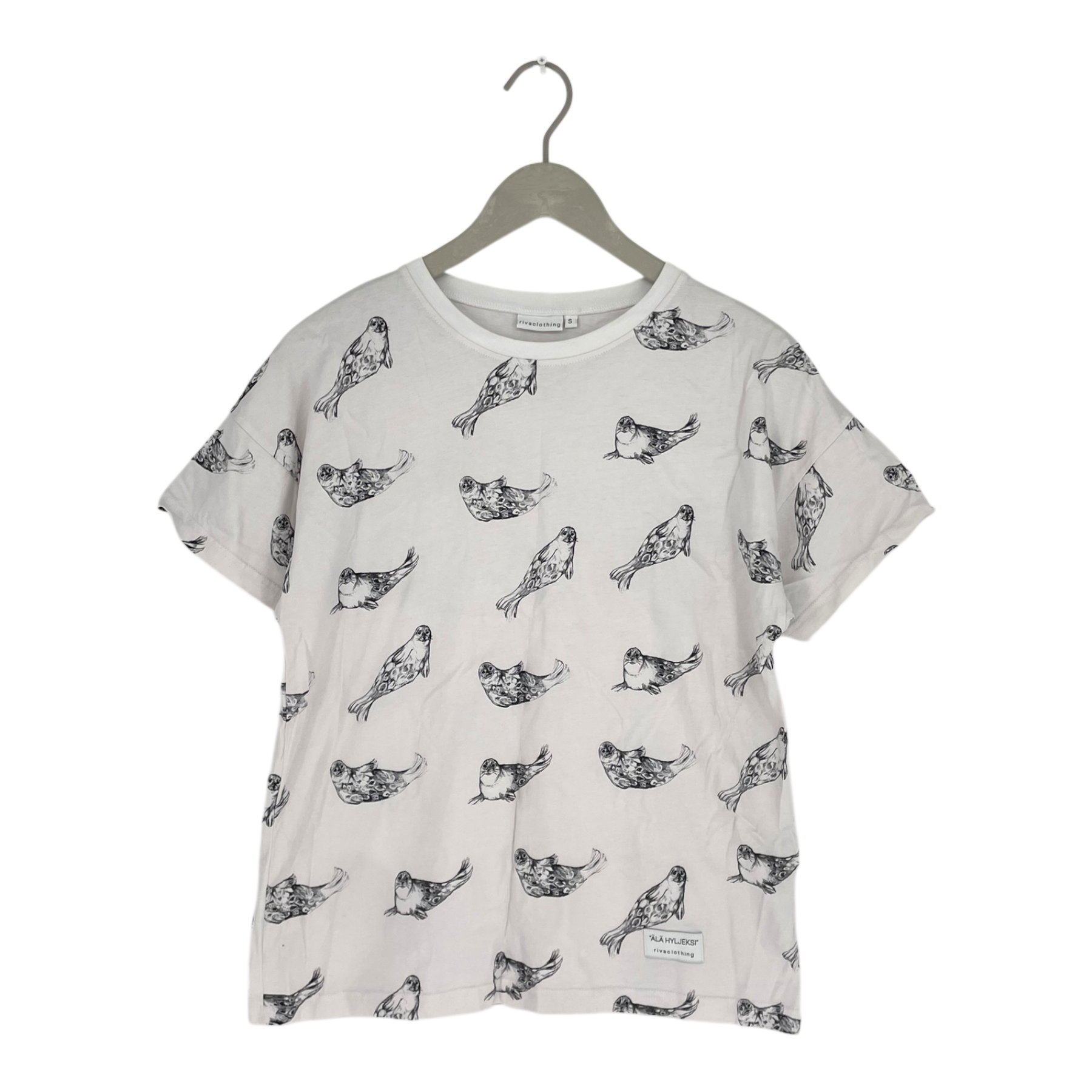 Riva Clothing Älä hyljeksi t- shirt in Saimaa ringed seal print.