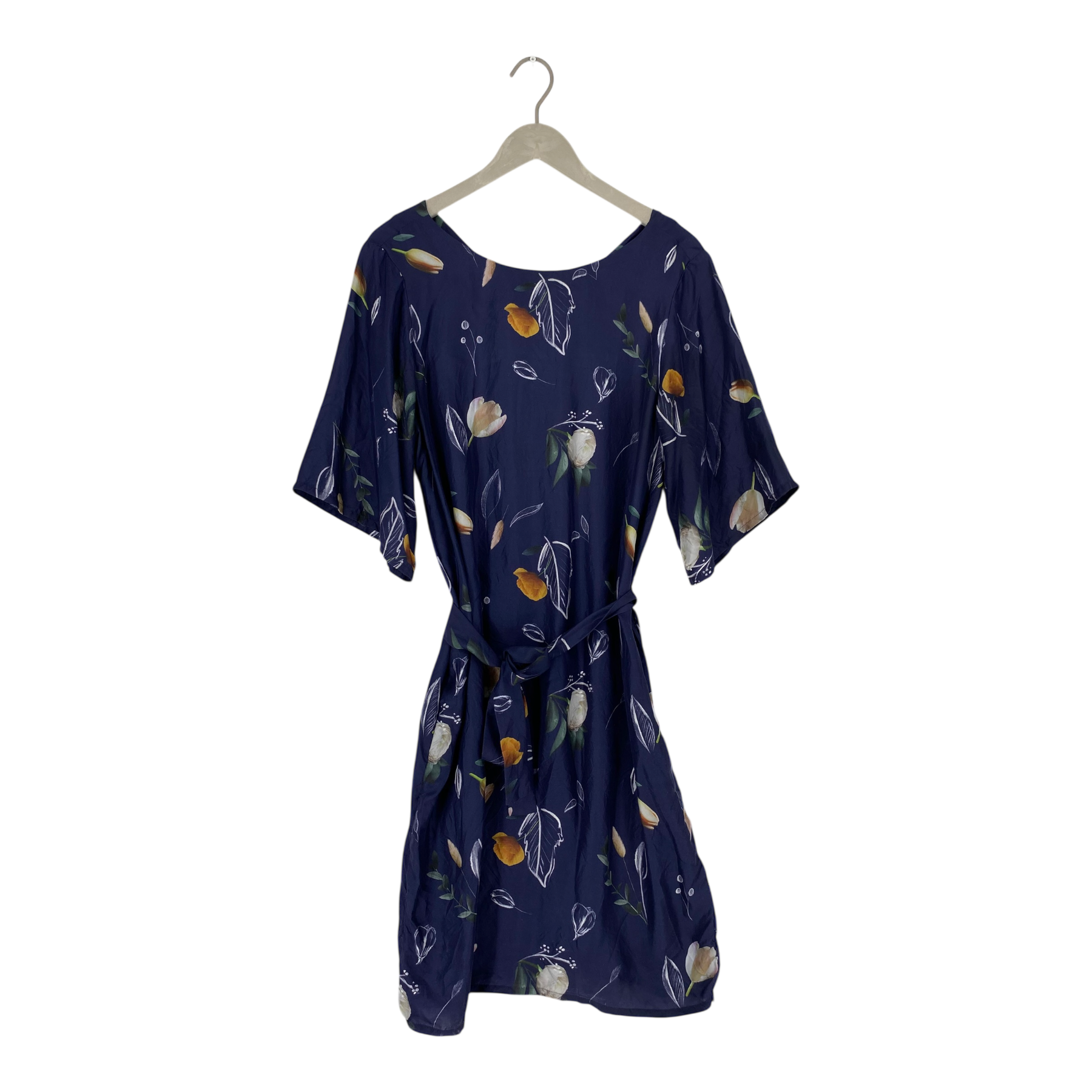 Uhana women's short sleeve silk dress with a removable belt.