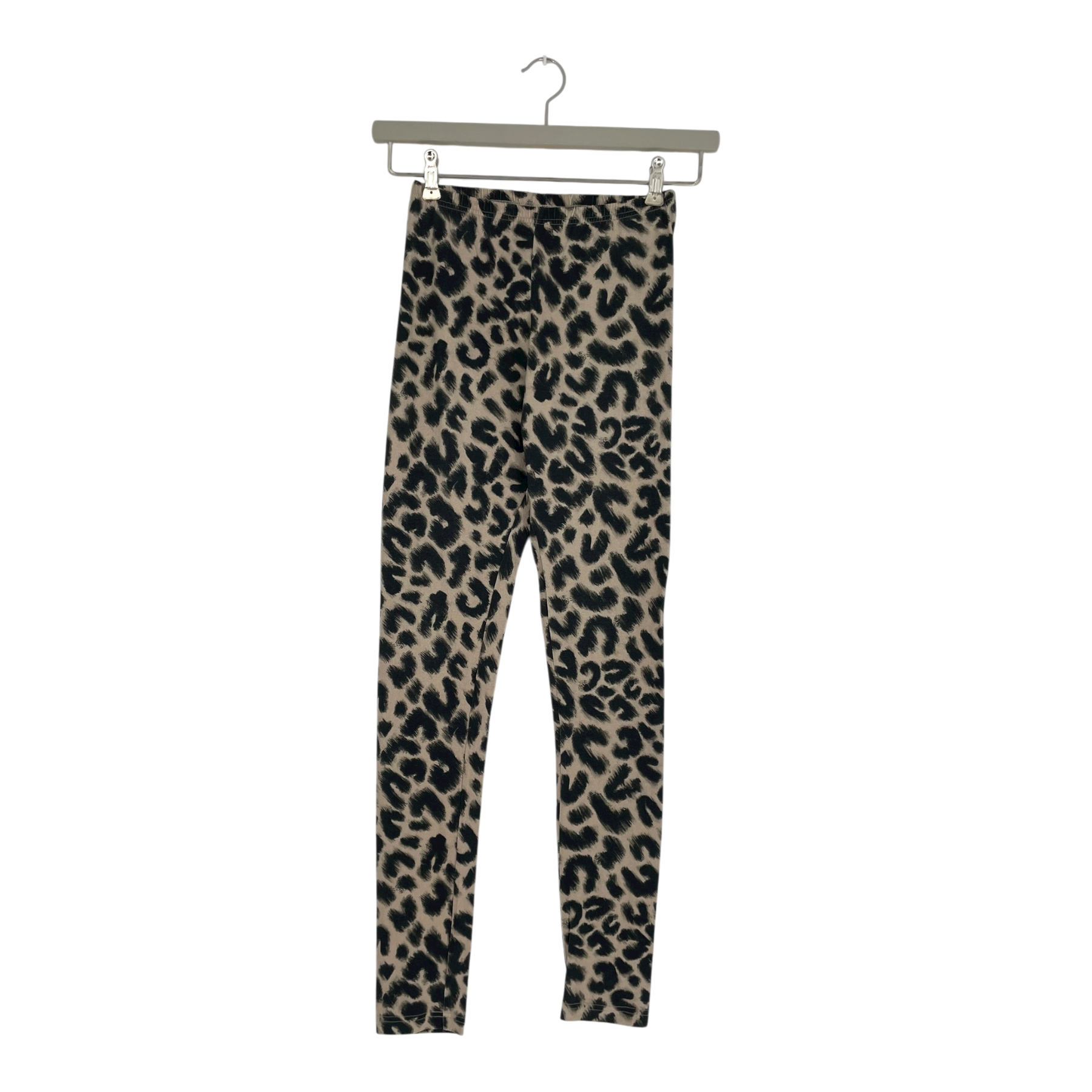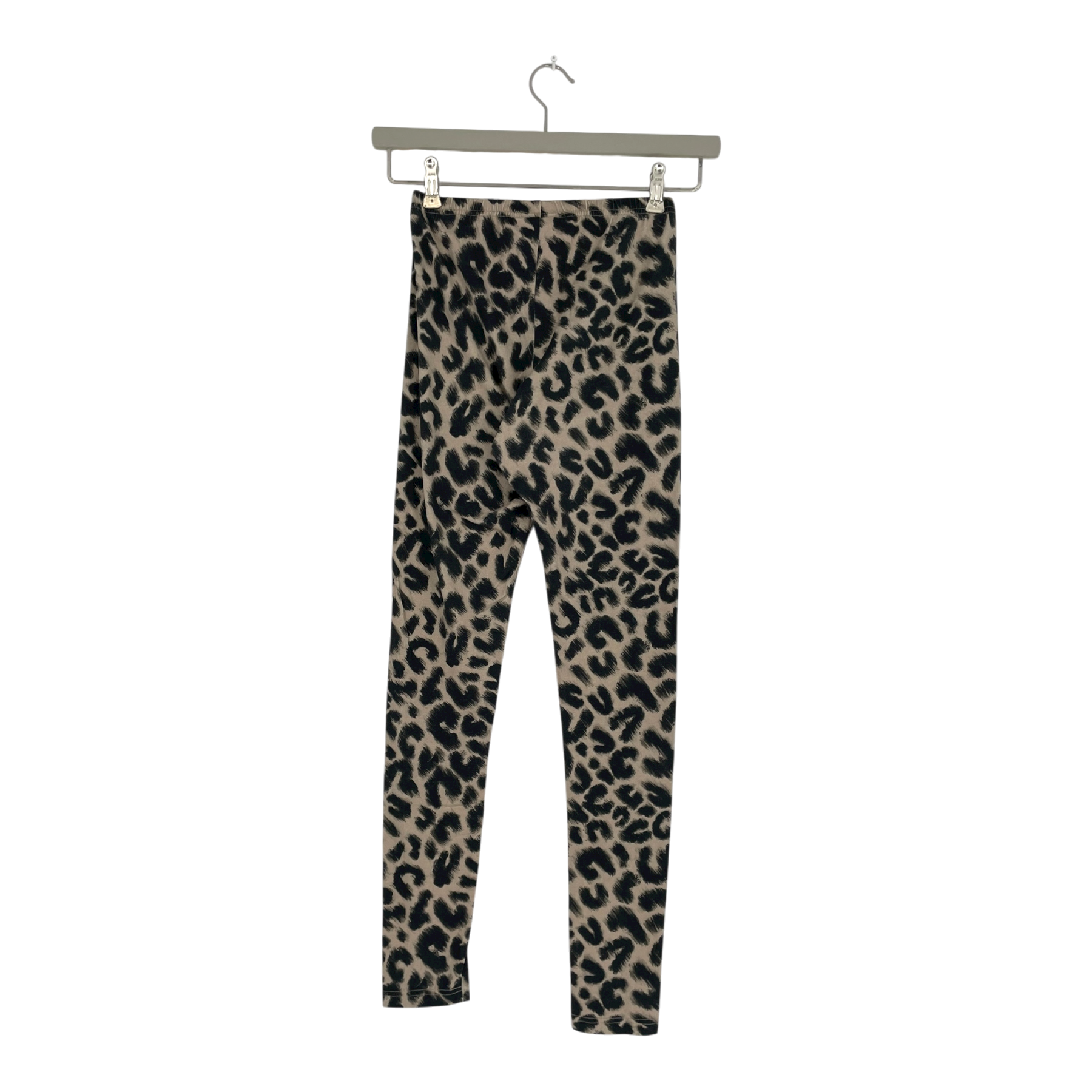 Versonpuoti leggings with an elastic waistband in leopard print. The color has somewhat washed out and there is wear on the seams.