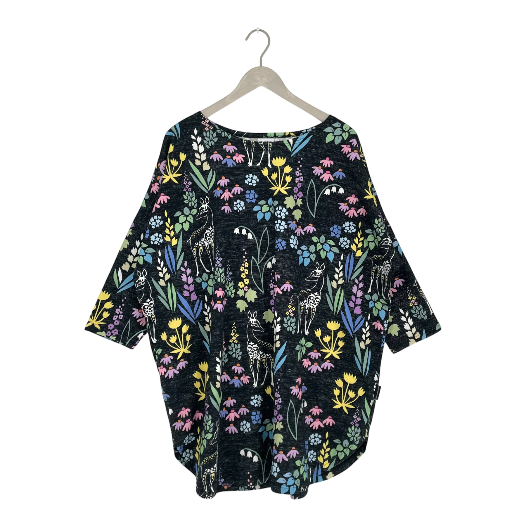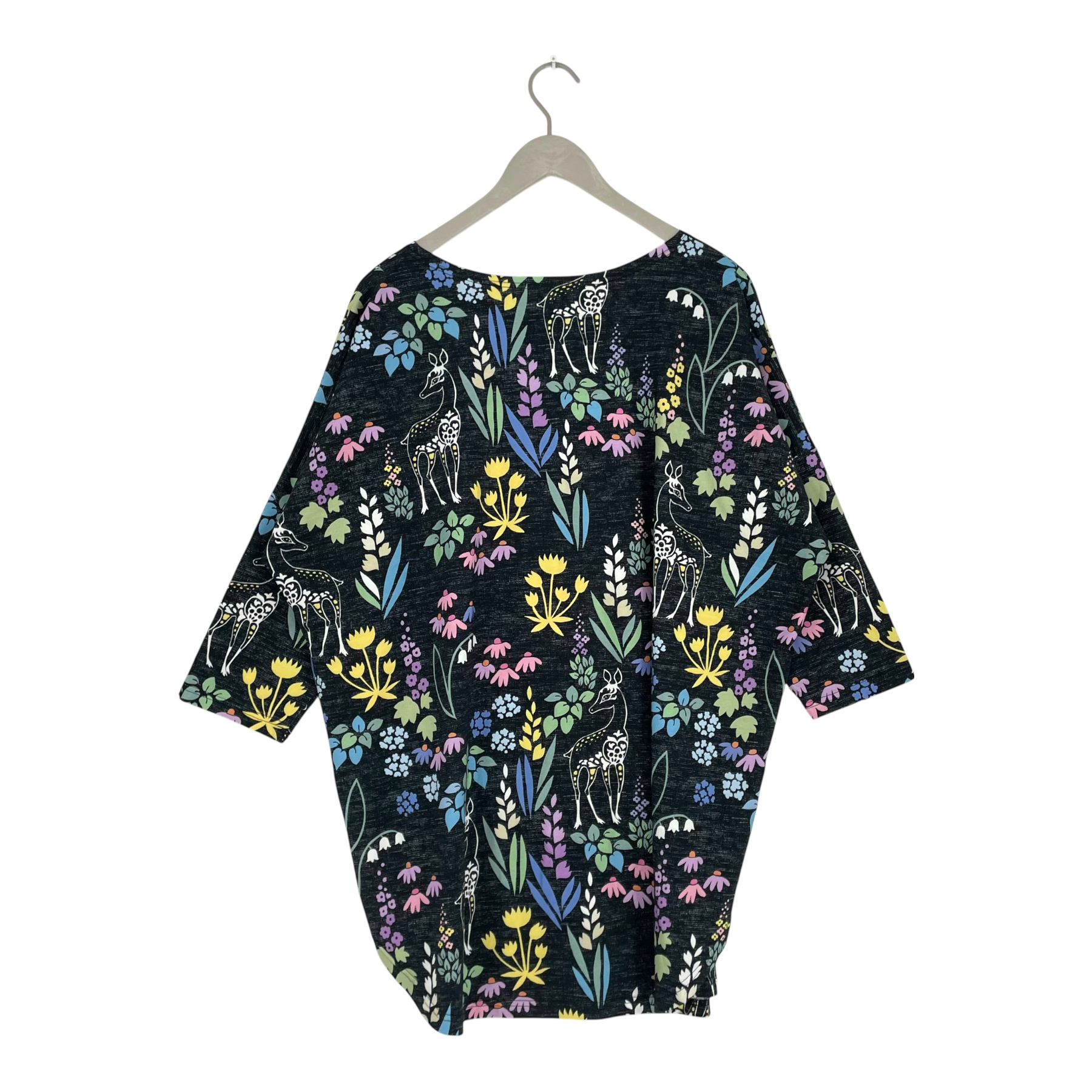 Versonpuoti Aava 3/4 sleeve tunic dress in flower and bambi print.