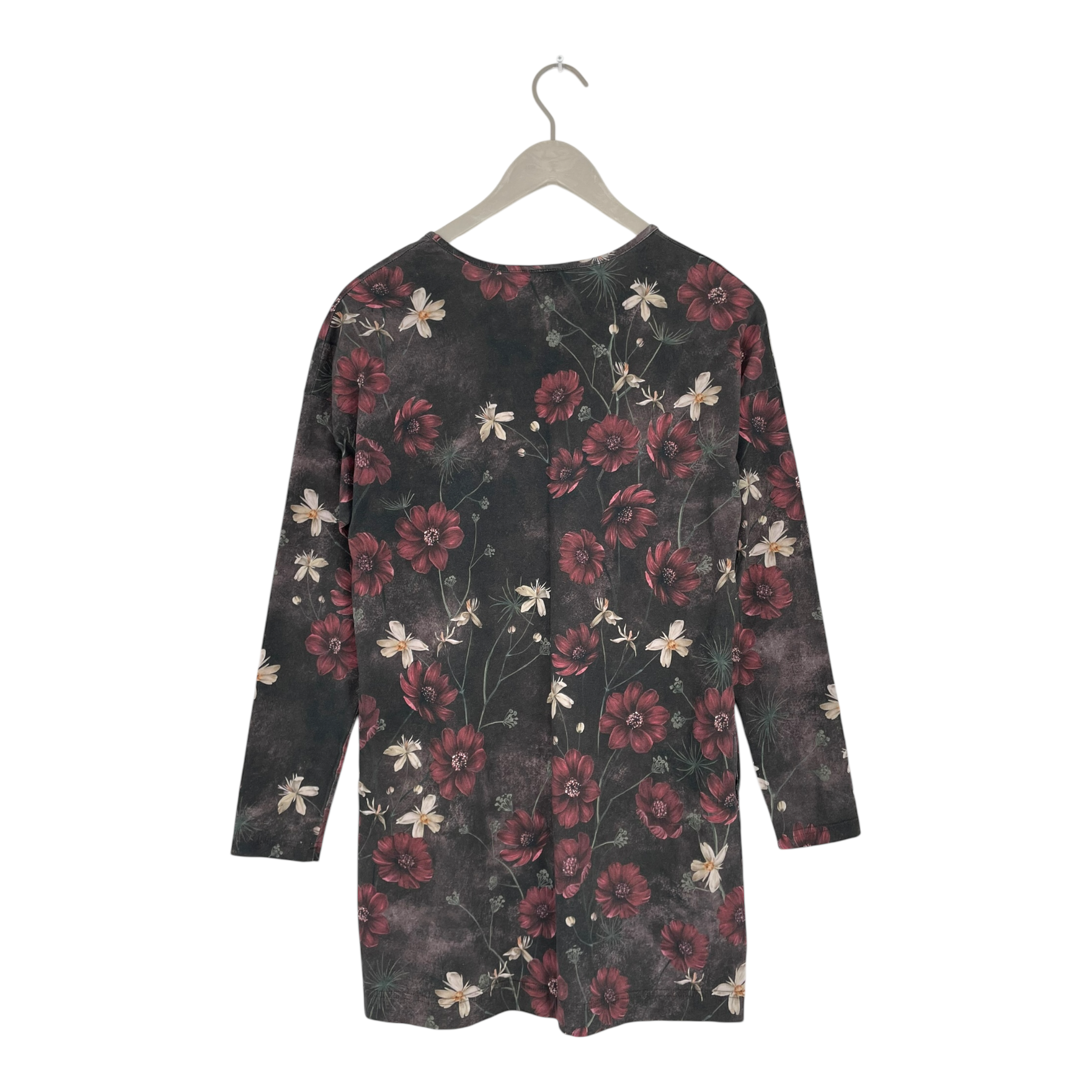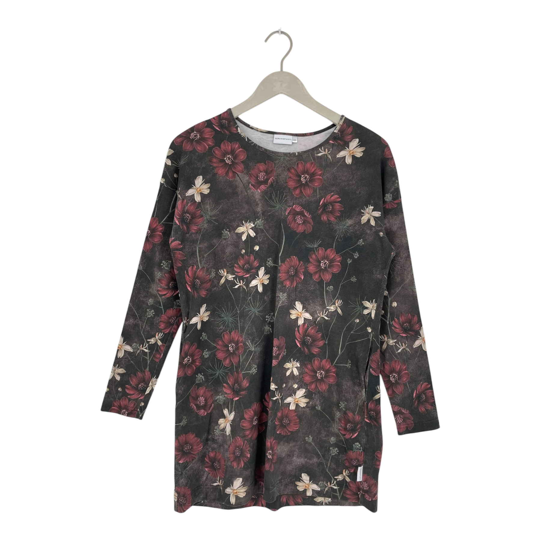 Versonpuoti long sleeve tunic shirt with flower print and pockets on the sides.