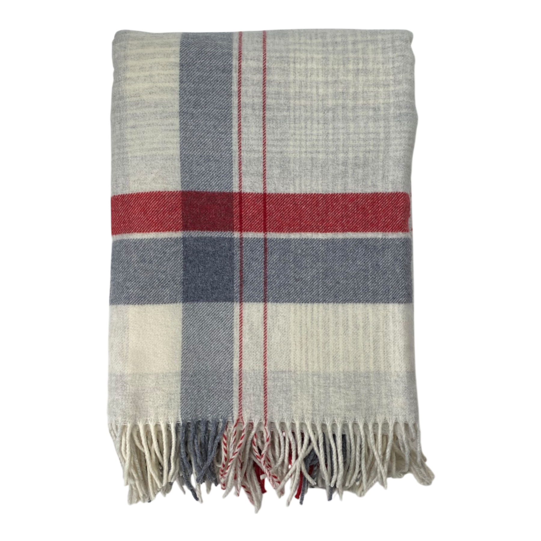 Zoeppritz knitted New Checks wool blanket with fringes.